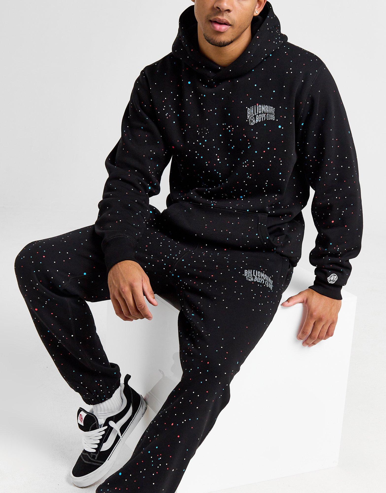 Make your 'fit land with these men's Small Logo All Over Print Joggers from Billionaire Boys Club. In a Black colourway, these standard-fit joggers are made from soft cotton fabric for a comfy feel. They feature a drawcord tie on the elasticated waistband and cuffed ankles to taper the shape, while zip-fasten side pockets and a rear pocket stash the essentials away. With an all over galaxy print, they're signed off with the BBC Arch logo on the thigh and the Astronaut tab on the back. Machine washable. | Our model is 6'1" and wears a size medium.