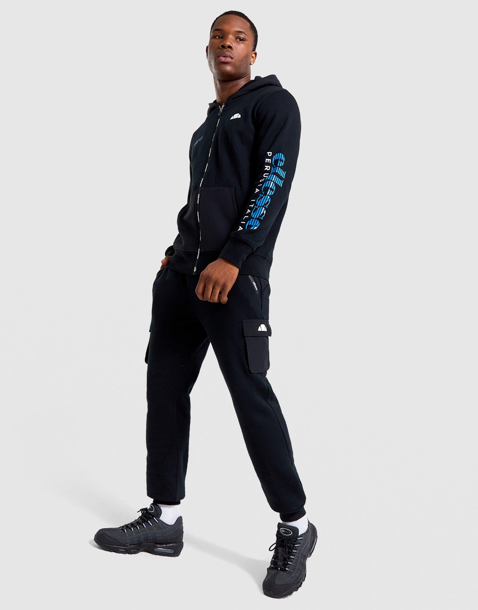 Upgrade your athleisure game with these men's Ellesse Woven Cargo Joggers, exclusive to JD. Built with a standard fit and woven fabric construction, they offer a premium feel with functional cargo-inspired detailing. The black colourway with grey and blue accents keeps things versatile while adding contemporary sportswear edge. Perfect for layering with hoodies or wearing solo, these joggers blend Ellesse heritage with modern street style. Style Code: SJD24559