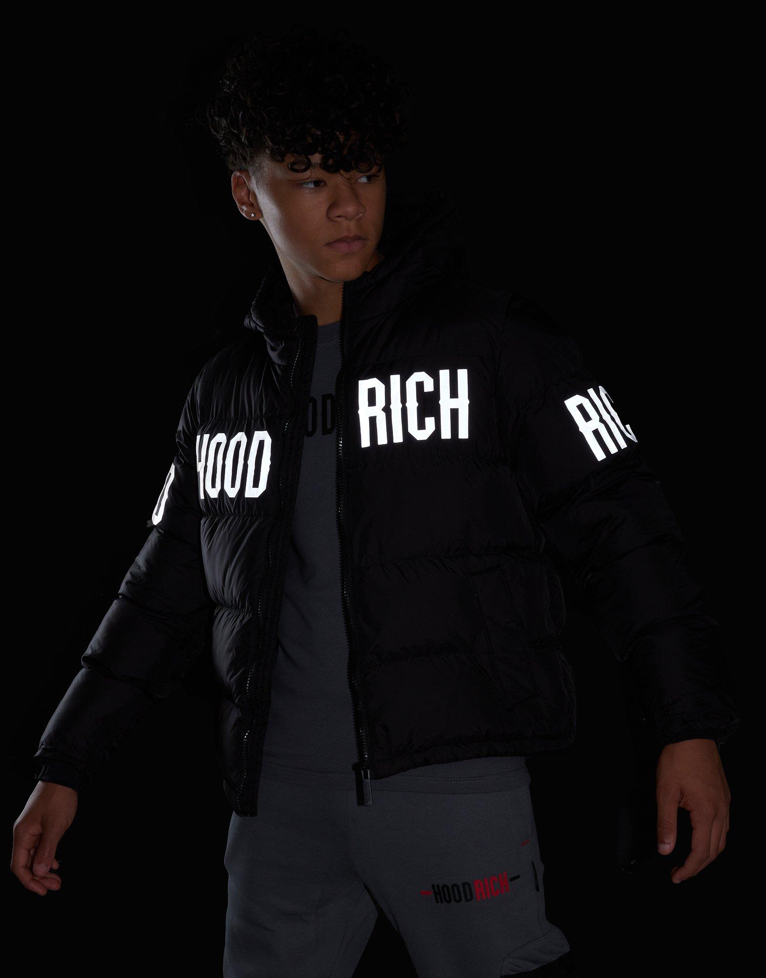 Lock out the cold with this juniors' Parallel Padded Jacket from Hoodrich. In a Black colourway with reflective details, this standard fit jacket is cut from smooth, water-resistant polyester with padded fill to keep you toasty. It features a full-zip fastening and hood for custom coverage, with elasticated trims for a secure fit and side pockets for stashing your stuff. Finished up with signature Hoodrich branding. Machine washable.