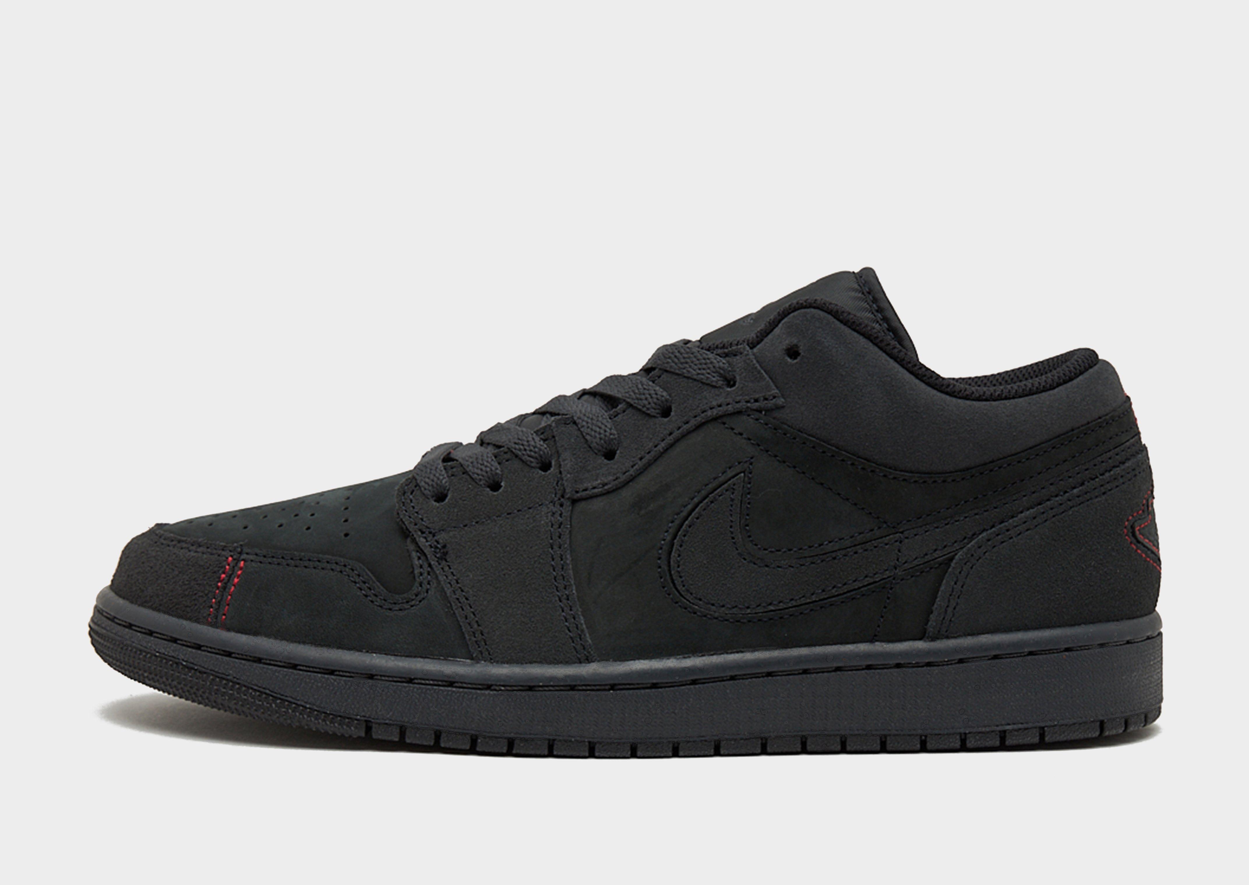 Grab a court legend with these men's Air 1 Low sneakers from Jordan. In an all-Black colourway with contrasting Red details, these trainers have a layered leather and synthetic upper for a premium feel. They feature a low-cut, padded ankle collar and a perforated toe to keep you cool and comfy. Underfoot, the Air-Sole unit and foam cushioning combine for an ultra-smooth and responsive ride. With OG-inspired grip to the rubber outsole, these sneaks are finished up with signature Swoosh branding and the iconic Air Wings logo.
