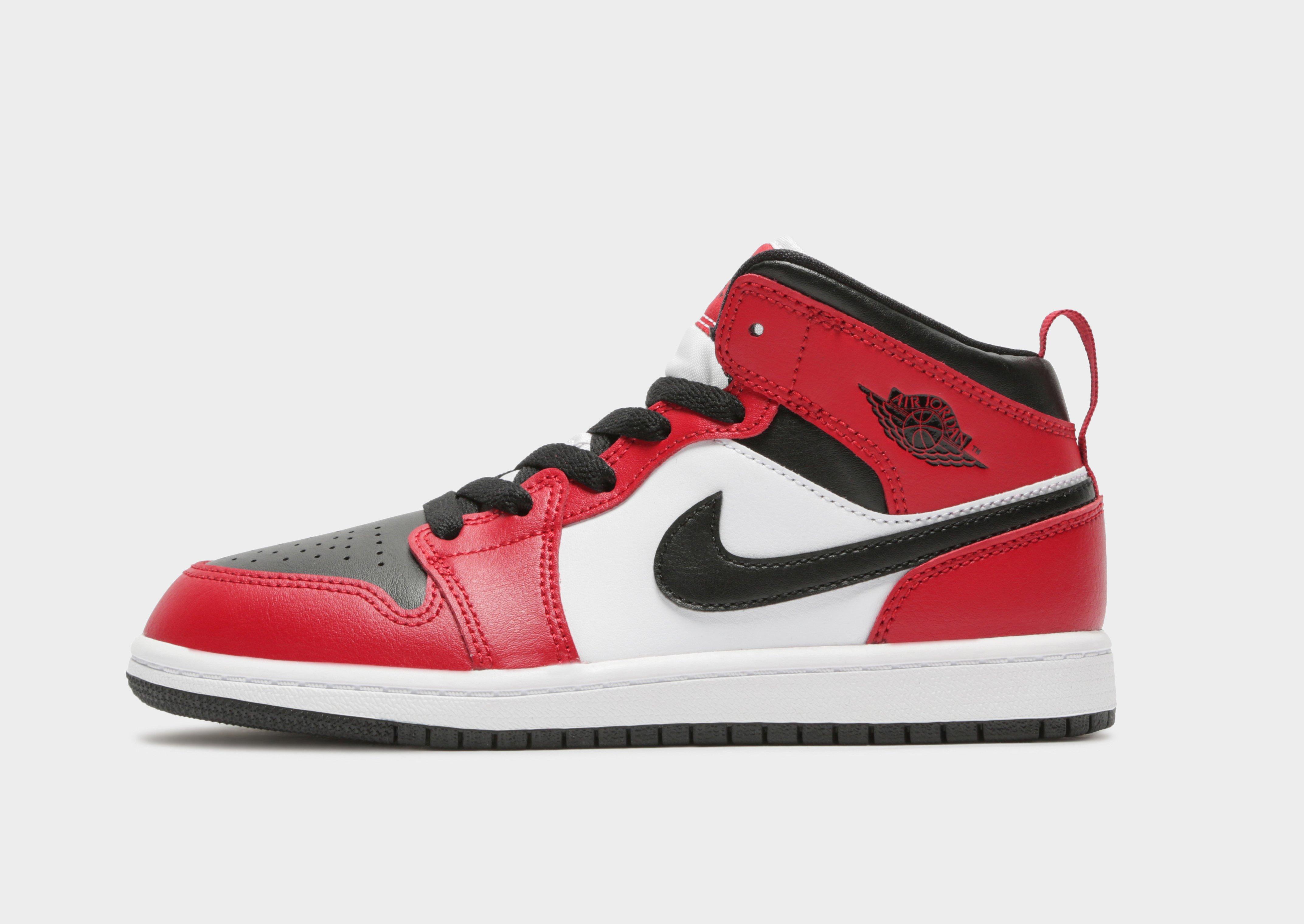 Take your court style to the next level and step up your sneaker collection with these children's Air Jordan 1 Mid sneakers. In a black, red and white colourway, these creps are made with a leather and synthetic upper for essential support and premium style. With tonal lacing for a locked-in fit and perforations to the toe to keep you cool, these trainers are sat on a responsive midsole with encapsulated Air cushioning to the heel for a responsive ride - on the court and the streets! With a mid-cut design that gives you ankle support, these creps come with a grippy outsole for standout traction. Finished with Air Jordan branding and the iconic Swoosh to the sidewalls. 'ONE PURCHASE PER CUSTOMER - MUTIPLE PURCHASES WILL BE CANCELLED'