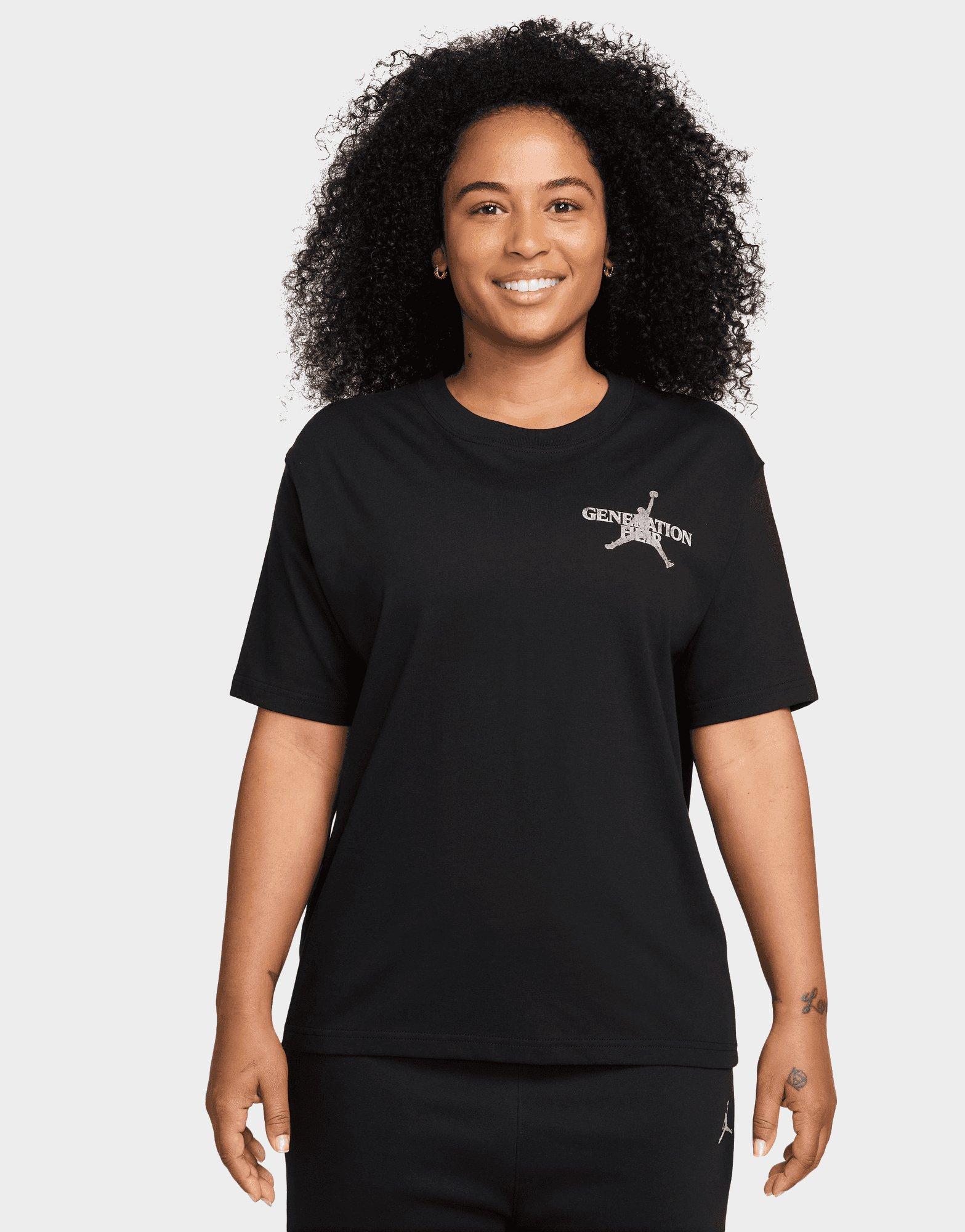 Make a statement in this women's Jordan Sport Oversized Tee with Dri-FIT technology. The oversized fit with short sleeves creates a relaxed, contemporary silhouette perfect for athleisure. Black colourway with white branding delivers bold contrast and iconic Jordan style. Moisture-wicking fabric keeps you comfortable whether training or relaxing. Style Code: IF2221-010