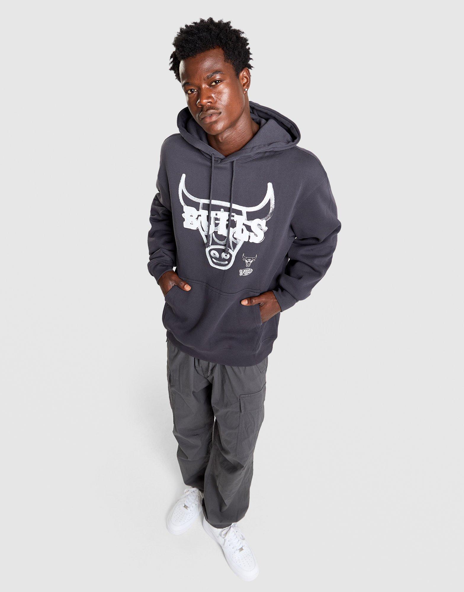 Stand out with this men's Mitchell & Ness Graphic Exclusive Bulls Hoodie. Designed with a standard fit and long sleeves with ribbed cuffs, it features black with white exclusive graphics celebrating Bulls heritage. The bold design brings vintage basketball energy to modern streetwear. Perfect for die-hard Bulls fans, this hoodie combines Mitchell & Ness quality with unique team graphics. Style Code: MNCG4672