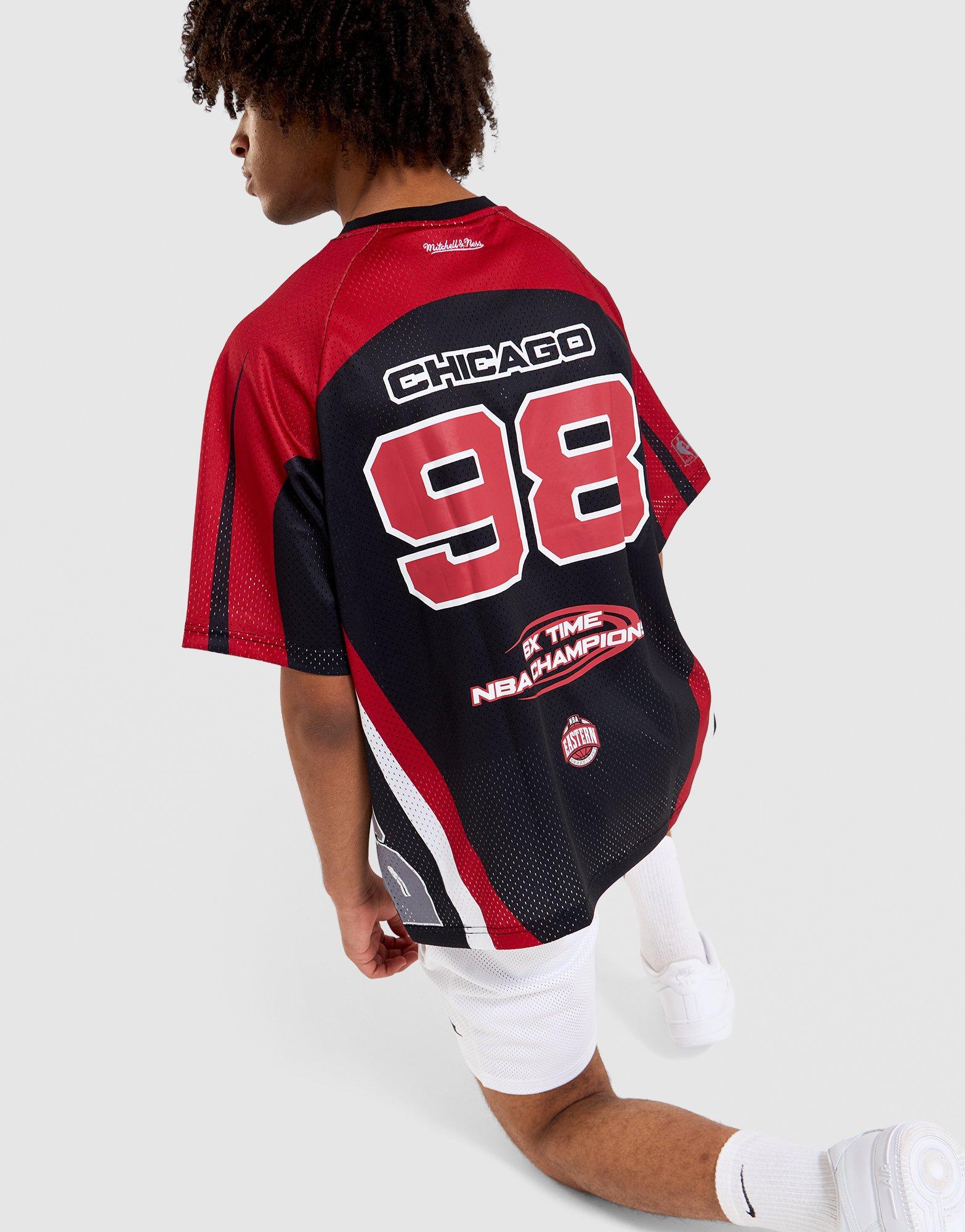 Rep Chicago Bulls legacy with this men's Mitchell & Ness Reverse Bulls Tee in black, red, and white. The standard fit ensures all-day comfort while authentic Bulls branding showcases your team pride. Mitchell & Ness quality construction delivers the premium feel fans demand. Essential NBA apparel that combines basketball heritage with contemporary street style. Style Code: MNCG4145