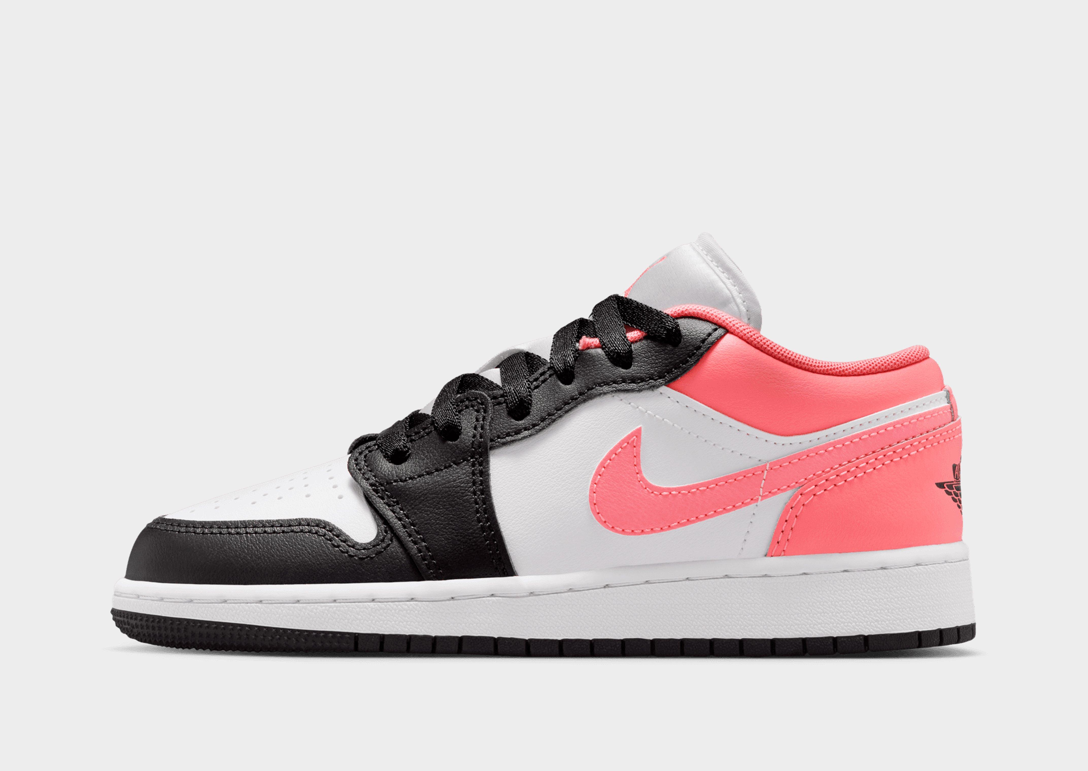 Keep your rotation iconic with the epitome of sneaker culture: the Air Jordan 1 Low. Born from the collaboration between Nike and basketball legend Michael Jordan in 1985, the AJ1 changed the game forever, shattering conventions with bold colours and silhouettes. In a Black colourway with Pink details, these low-top shoes are crafted from a leather, synthetic leather and textile blend across the upper for support. Underfoot, the foam midsole combines with Nike Air cushioning for lightweight comfort, while the durable rubber outsole has pivot circles for retro-inspired traction. With a padded ankle collar and perforations on the toe, these kicks are finished off with the Swoosh and Air Wings logo to the sidewalls and the iconic Jumpman to the tongue. Decades later, the AJ1 remains an icon of style and athleticism, transcending generations with its timeless design and legendary status. Style Code: 553560-025