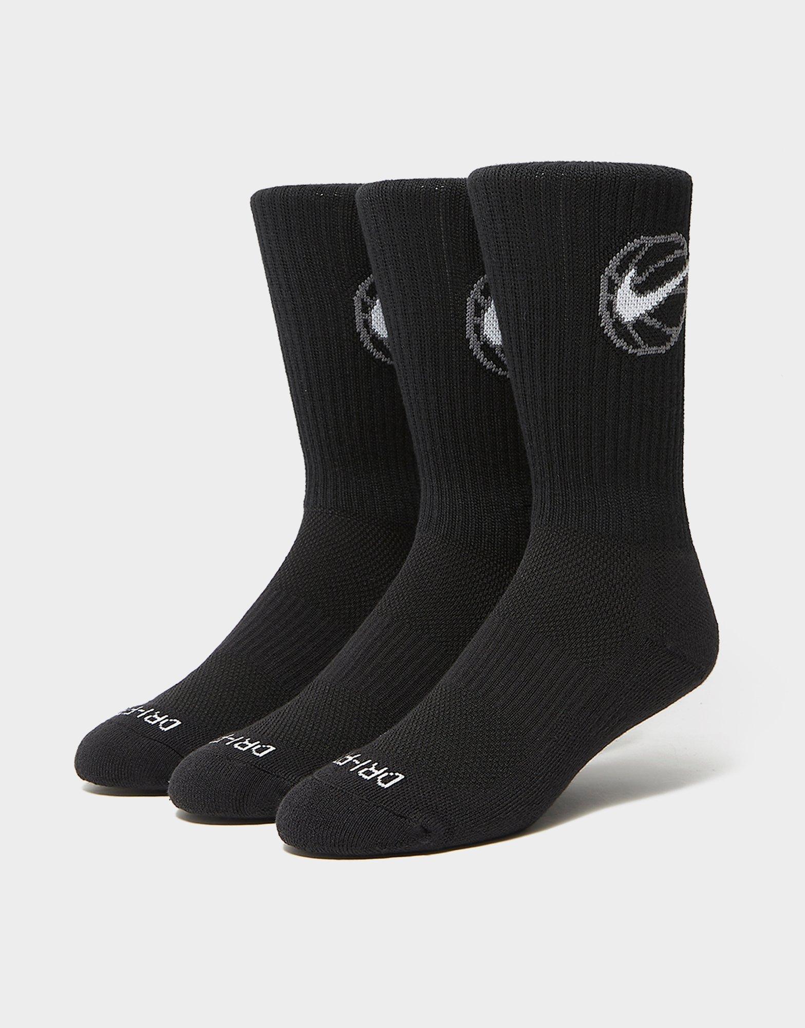 Made for the non-stop baller, these men's Everyday Crew 3 Pack Basketball Socks from Nike have comfort covered. In a black colourway, these socks are made from a stretchy poly cotton for a fresh fit and feel. Underfoot cushioning provides comfort on the court, while a ribbed arch band wraps your midfoot for a supportive feel. Equipped with Dri-FIT tech, which helps keep your feet dry, these 3 pack socks feature a crew silhouette that covers your ankle and lower calf. Finished up with a b-ball graphic and Swoosh branding. Machine washable.
