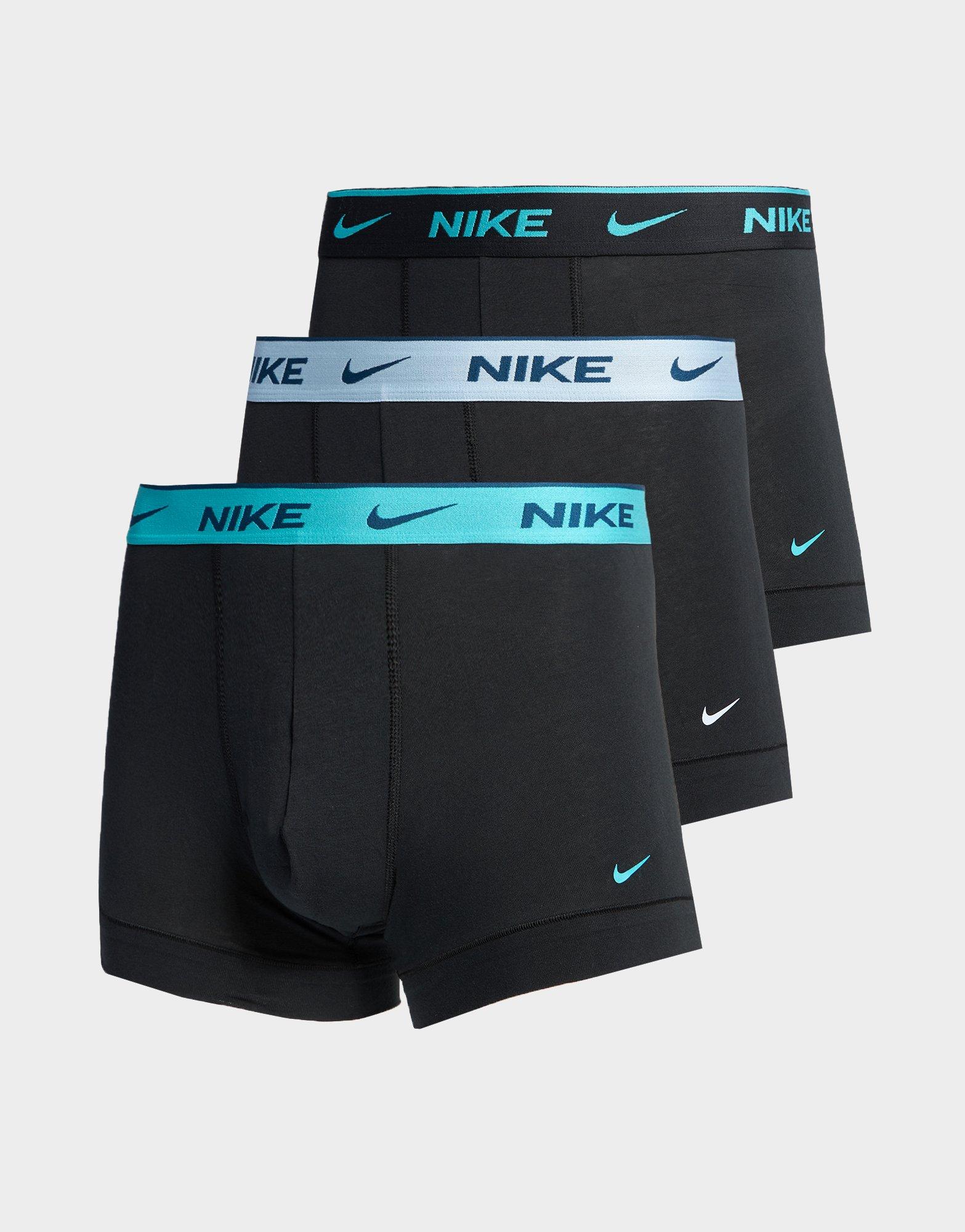 Refresh your underwear drawer with this men’s Nike Every Cotton 3‑Pack Trunks in black, blue, and light-blue hues. Made from soft cotton for breathable comfort, these trunks offer a relaxed fit that moves with you. Perfect for everyday wear, they showcase Nike’s sporty, performance-inspired style with a modern colour twist. Style Code: KE1008_EXS