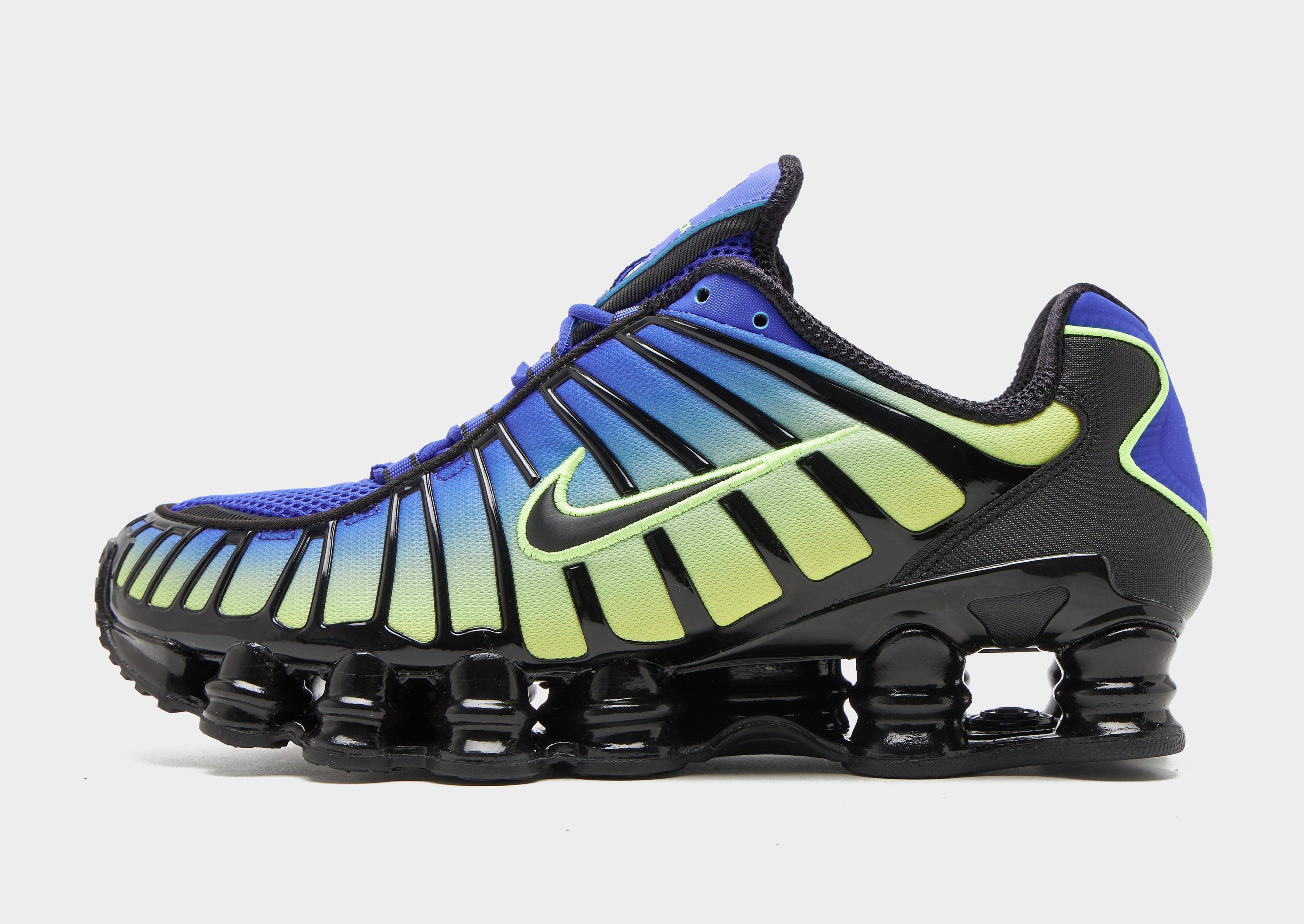 Retro but futuristic, these men's Shox TL sneakers from Nike bring back the 2003 icon in its OG form. In a Black colourway with Volt Green details, these statement shoes are built with a breathable mesh upper that features glossy TPU overlays and a tonal lace up fastening for a locked-in fit. Nike's iconic Shox tech sits underfoot, with a full-length midsole of springy Shox columns for a super comfy feel. With a grippy rubber sole, these trainers are finished with Shox branding to the tongue and the signature Swoosh logo embroidered to the sidewalls. Style Code: AV3595-401