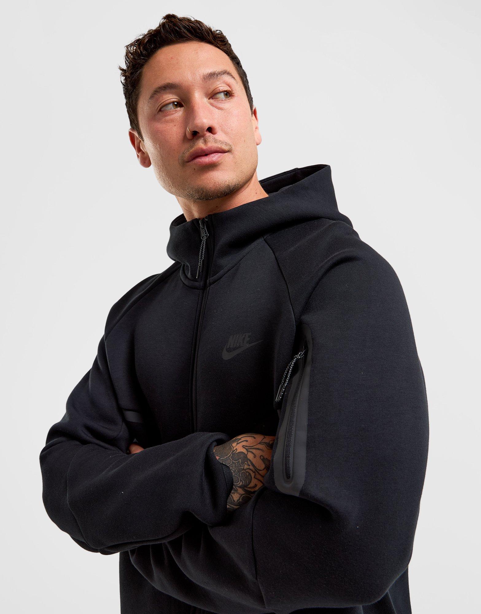 Layer up in a classic Swoosh style with this men's Tech Fleece Full Zip Hoodie from Nike. Coming in a Black colourway, this regular-fit hoodie is made with Nike's lightweight yet warming Tech Fleece fabric for lasting comfort. It features a two-way, full-zip fastening with a fixed hood to amp up the coverage, with stretch-bound cuffs to secure the fit. It has front pockets and a zip pocket on the sleeve for storage, and is finished with signature transparent taping and the iconic Nike logo to the chest.