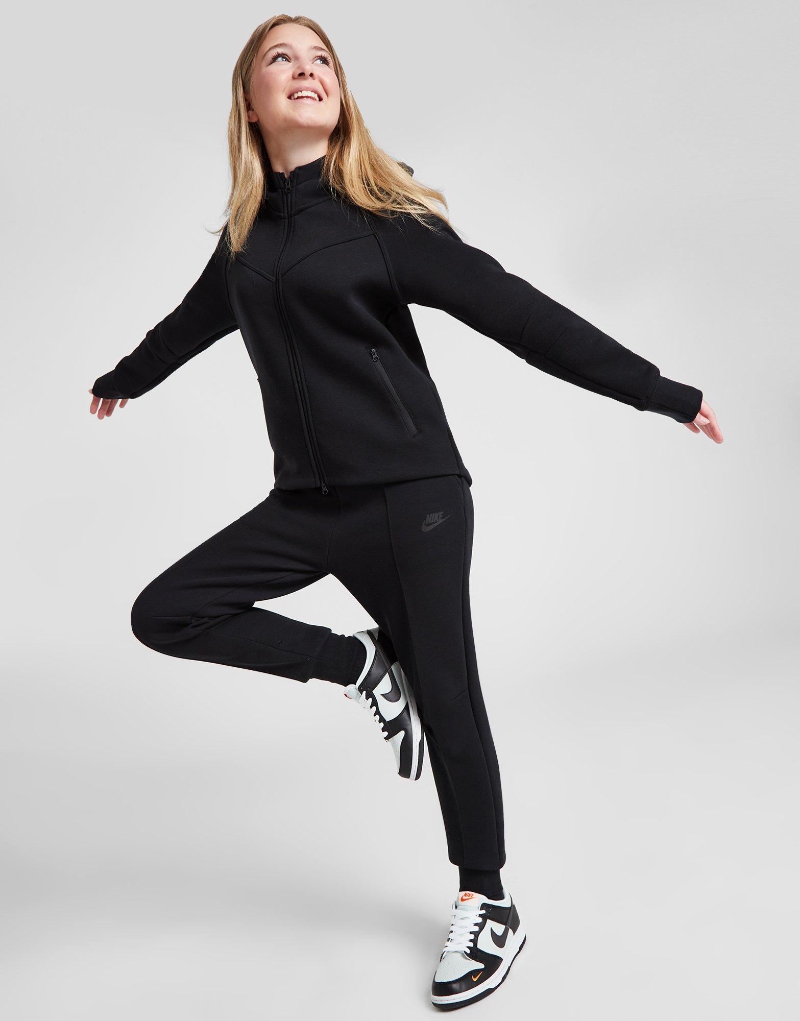 Step up your laidback style with these junior girls' Tech Fleece Joggers from Nike. In a Black colourway, these standard fit pants are cut from Nike's innovative Tech Fleece fabric for total comfort. They feature an elasticated, drawcord waistband for a relaxed wear, with ribbed cuffs for a secure feel. They have side pockets for easy storage and are finished up with signature Futura branding to the leg. Machine washable.
