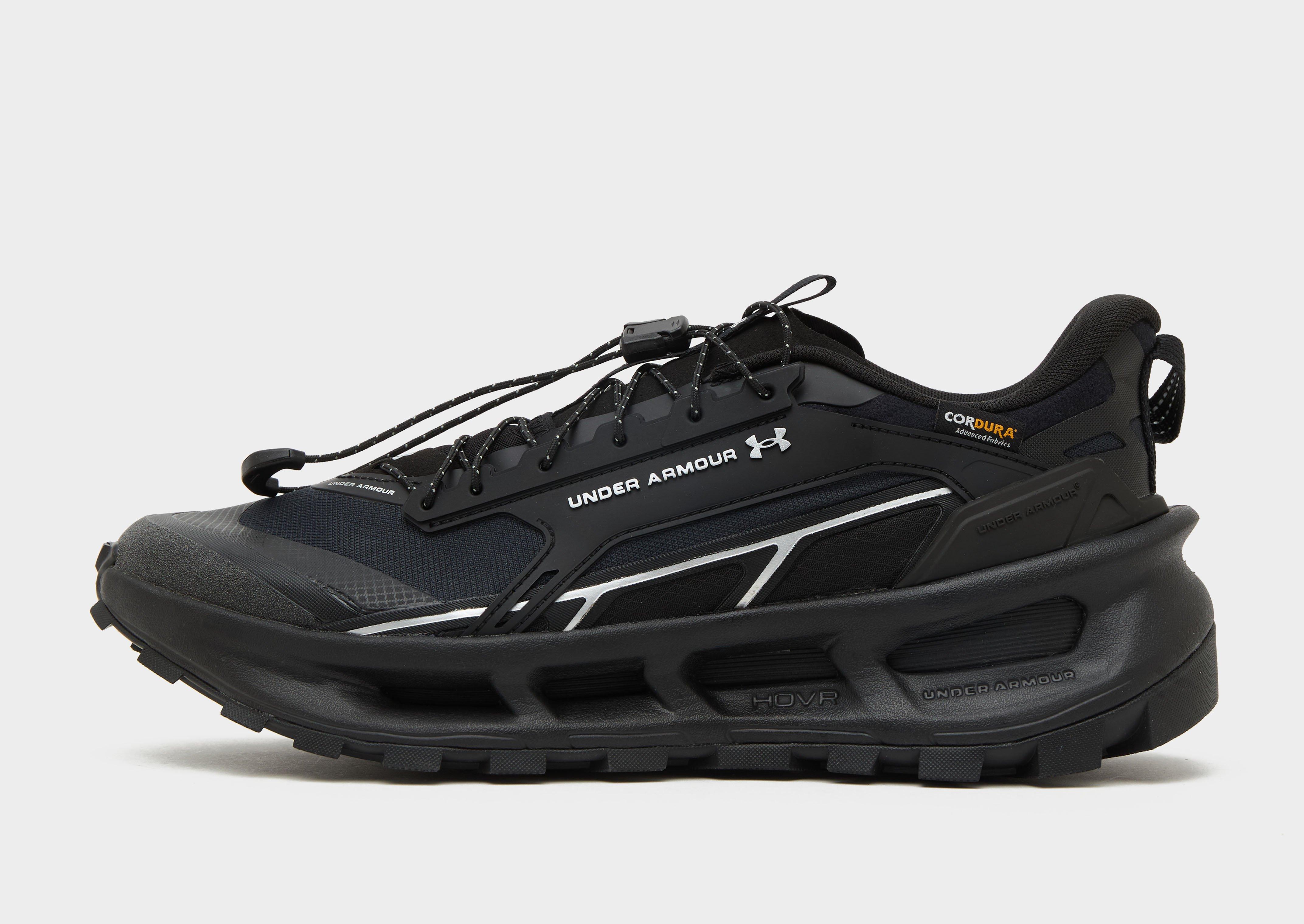 Lace up. Hit the trails. These men's Explor Trail Cordura trainers have a light, durable ripstop Cordura upper. They've got quick-toggle laces for easy on-off. A moulded TPU heel stabiliser for support. And a rubber toe cap for extra support. Below, the dual-density UA HOVR midsole keeps thigs cushioned. And the Exopgrip rubber outsole delivers grippy traction. Under Armour branding finishes things up.