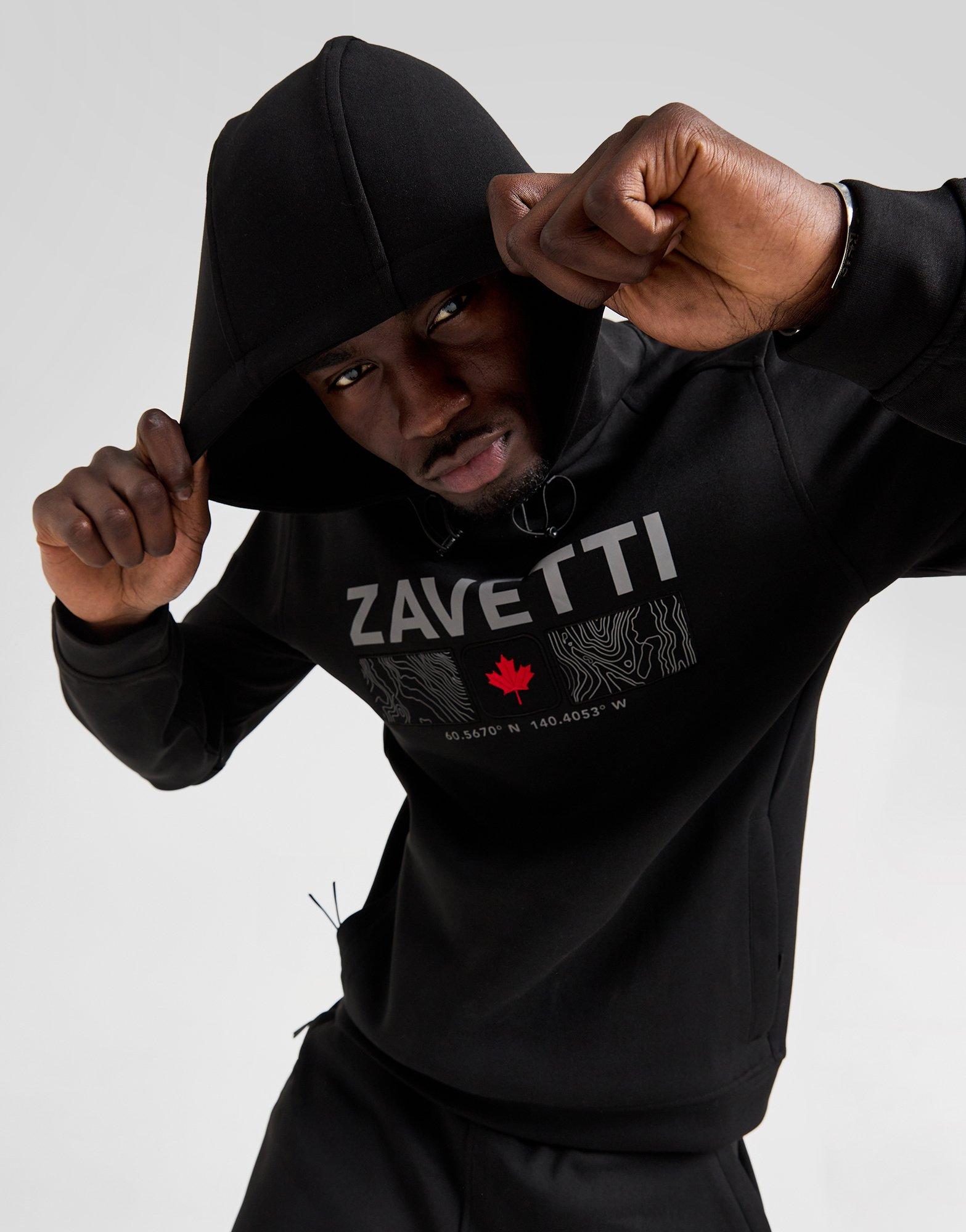 Layer up in street-ready style with this men's Ovello Contour Hoodie from Zavetti Canada. In a Black colourway, this hoodie is cut from a soft cotton-poly blend to keep you feelin' comfy. It features a hood with drawstring fastening so you can adjust the fit, ribbed trims to hold the shape and a kangaroo pocket up front for storage. Finished up with a maple leaf logo on the cuff and reflective Zavetti Canada branding on the chest. Machine washable | Our model is 6'1" with a 36" chest and wears a size medium.