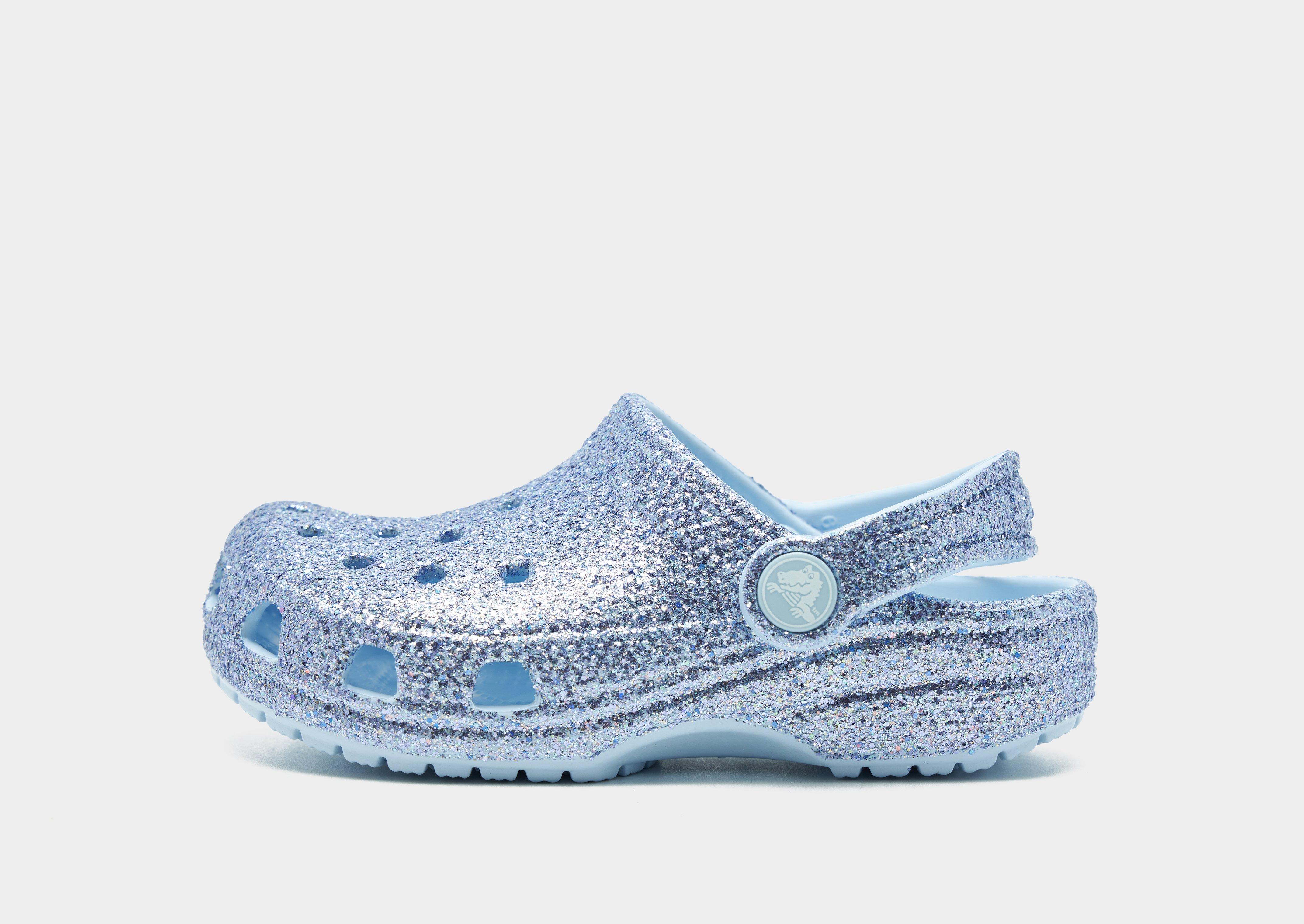 Add an iconic look to your footwear rotation with these children's Classic Clogs from Crocs. In a Frost Blue Glitter colourway, these clogs have a lightweight Croslite upper that has ventilation ports for breathability. They feature a soft footbed that offers responsive cushioning with every step, while the outsole keeps you gripped to the surface. Comfortable, simple, these clogs are easy to wear - just slip on and get going! Wear them around the house, to the shops, and pull the heel strap down to lock in. Style Code: 211939-4WK