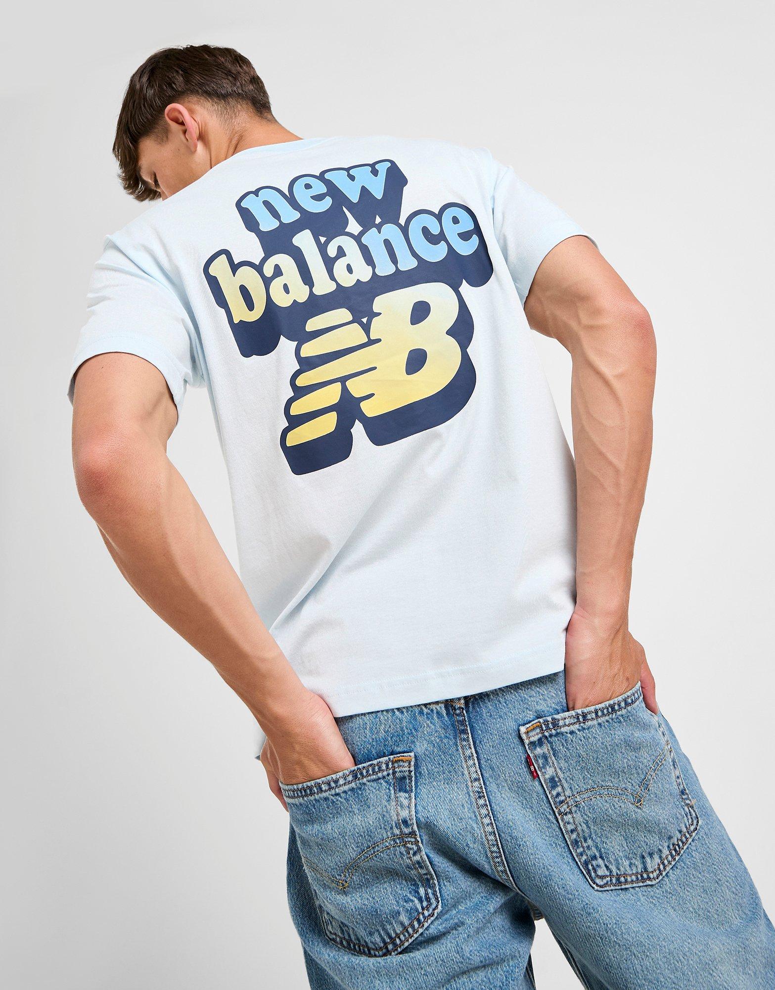 Elevate your everyday fits with this men's NB Bubble T-Shirt from New Balance. In a Sky colourway, this JD-exclusive tee is cut from soft, lightweight cotton for essential comfort. A standard fit, ribbed crew neckline and short sleeves come together for a classic look. Finished up with a bold New Balance back graphic, and a downsized logo to the chest. Machine washable. | Our model is 6'2" with a 37" chest and wears a size M.