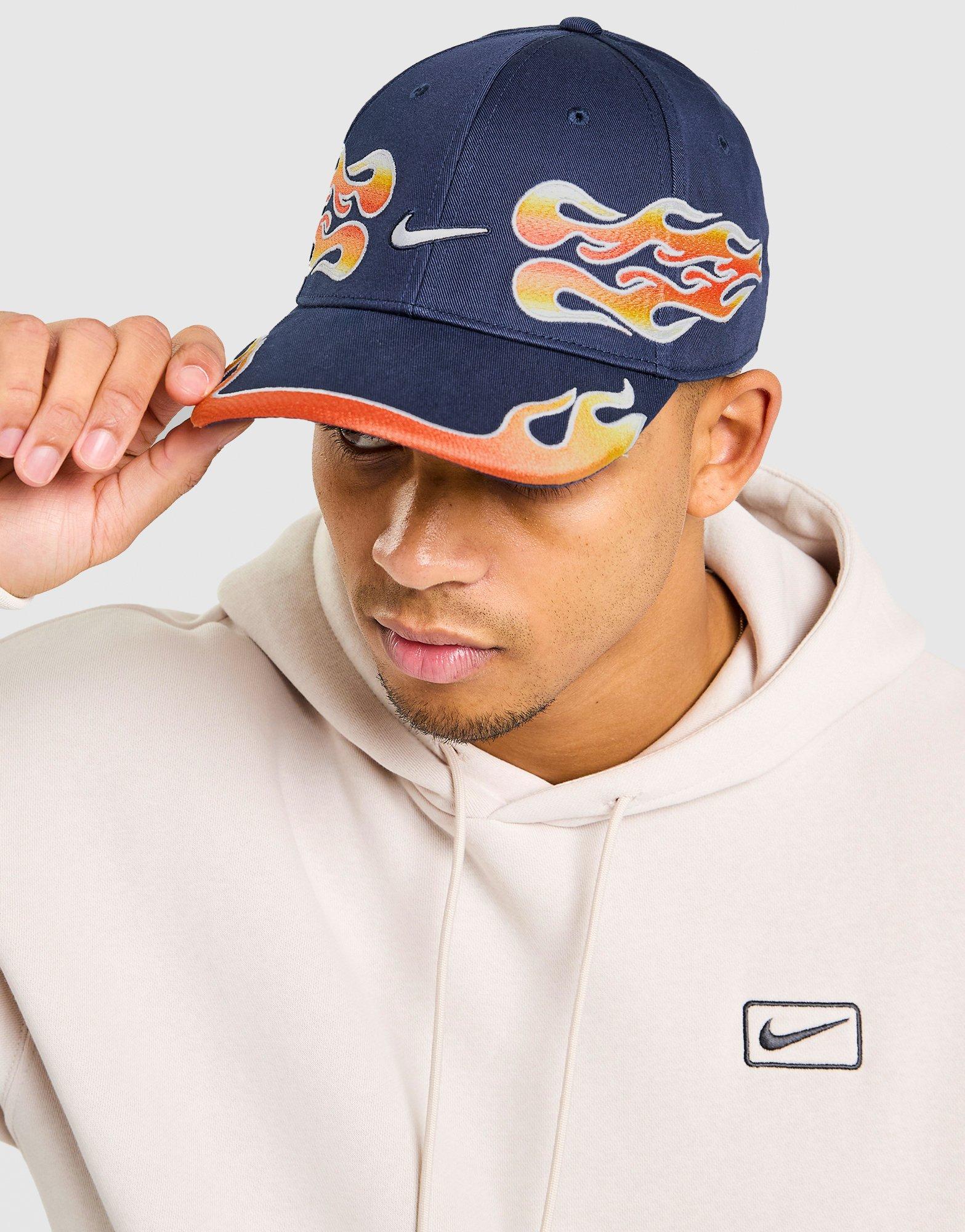 Bring the heat in this men's Nike Club Structured OG Flame Cap. In navy, this soft cotton cap's got airy eyelets through the crown and a pre-curved visor. Finished up with bold, contrast orange flame embroidery and a classic Swoosh to sign off. Hand wash.