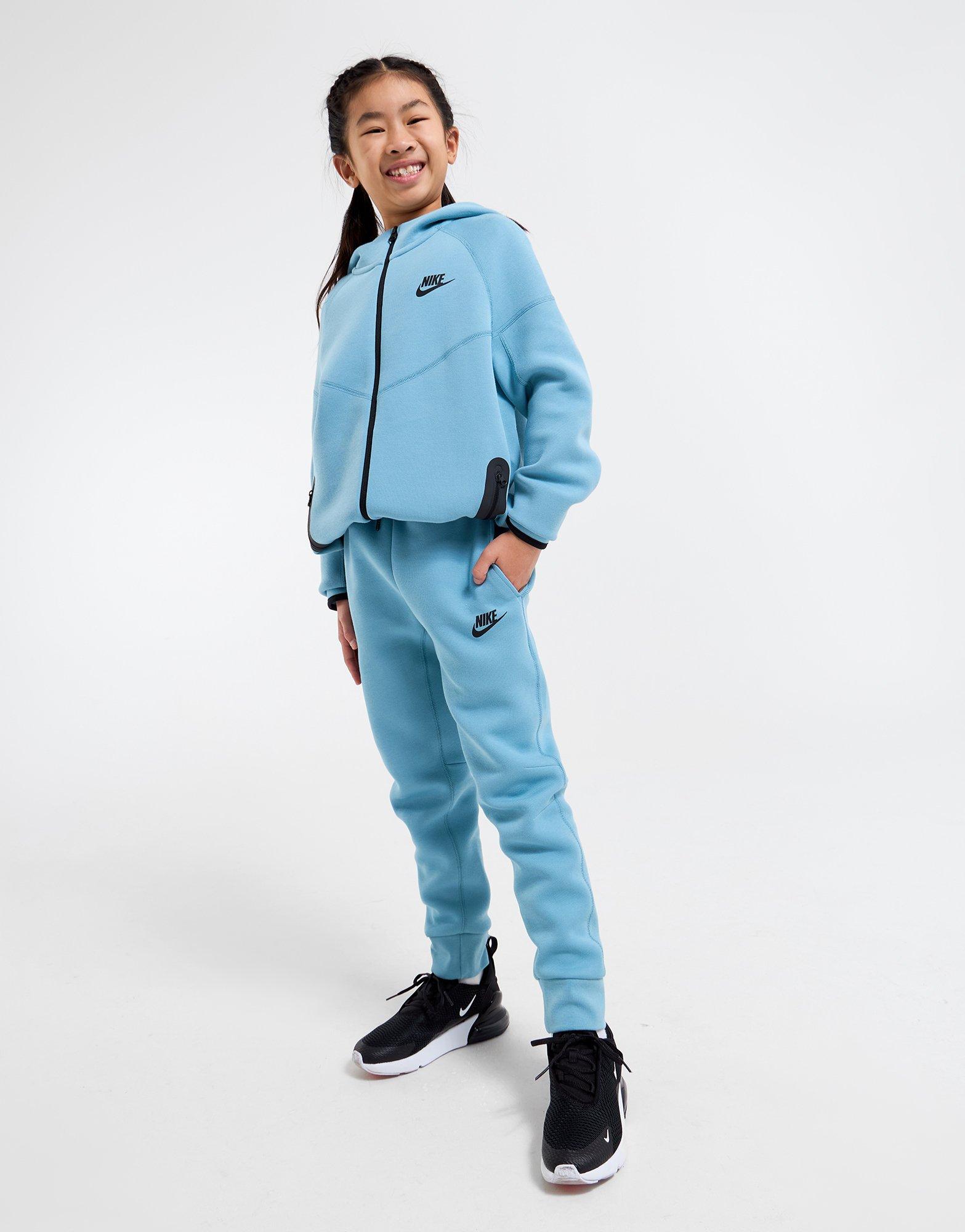 Stay warm without the weight in these juniors' Tech Fleece Pants from Nike. Built with Nike's innovative thermal Tech Fleece fabric that traps body heat in, the double-faced jersey delivers smooth comfort inside and out, with insets at the knees for a greater range of motion. Ribbed cuffs and hem optimise the fit and feel, while a bonded zip pocket to keeps your essentials secure. In a Blue colourway, they're finished with a tonal Nike Swoosh to the thigh.