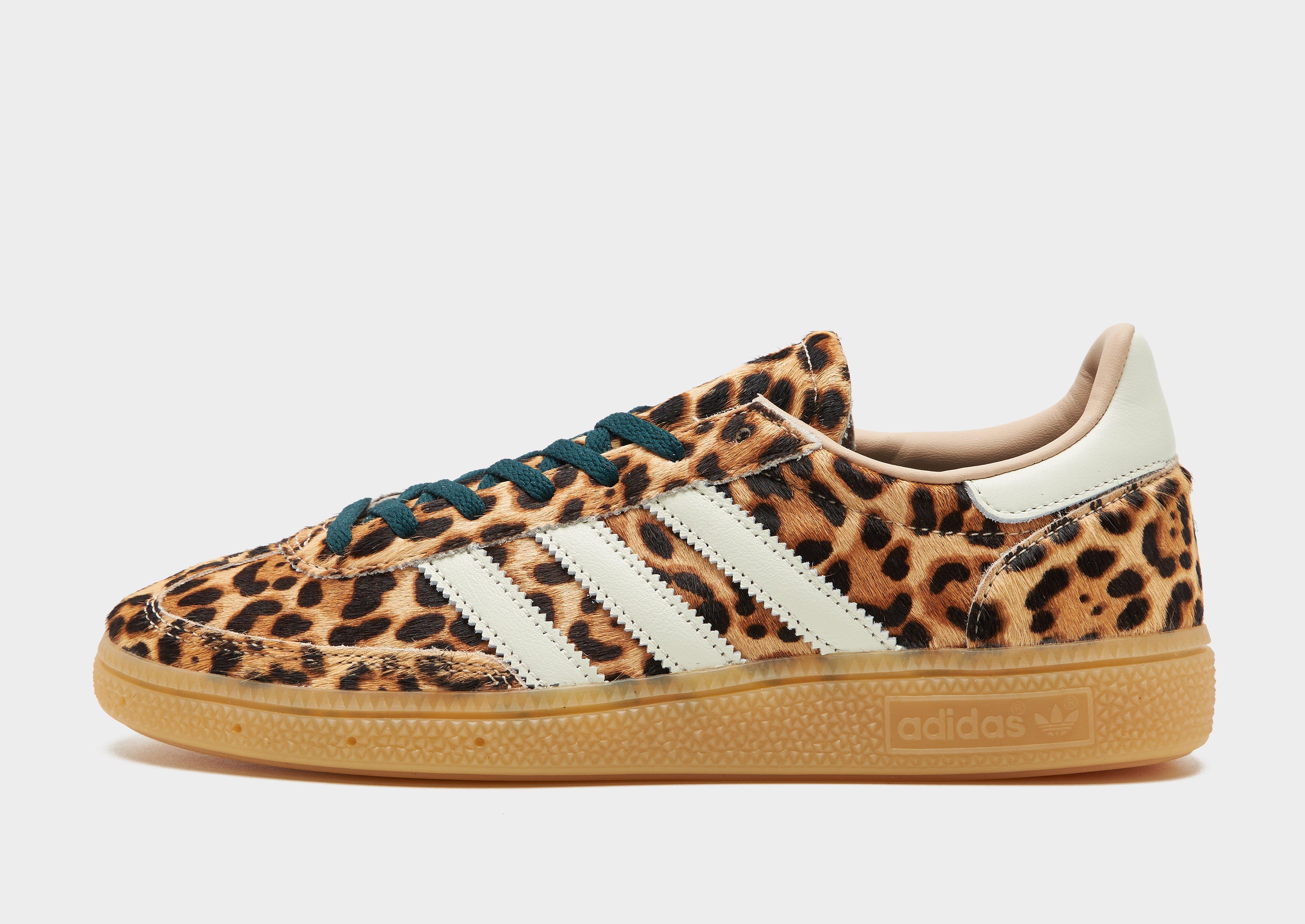 From the terrace to the street, rep a classic look with these women's Handball Spezial shoes from adidas Originals. First introduced in 1979 for the speedy handball courts of Germany, the simple yet stylish silhouette quickly made it a go-to, iconic trainer. Landing in a Leopard print colourway with Cream details, these JD-exclusive sneakers have an upper made with suede and nylon for durable wear. They feature a lace fastening with a padded ankle collar for a locked-in fit and sit on a lightweight midsole. With a gum rubber outsole for total traction, they're signed off with signature Adi 3-Stripes to the sidewalls. Style Code: KI6678