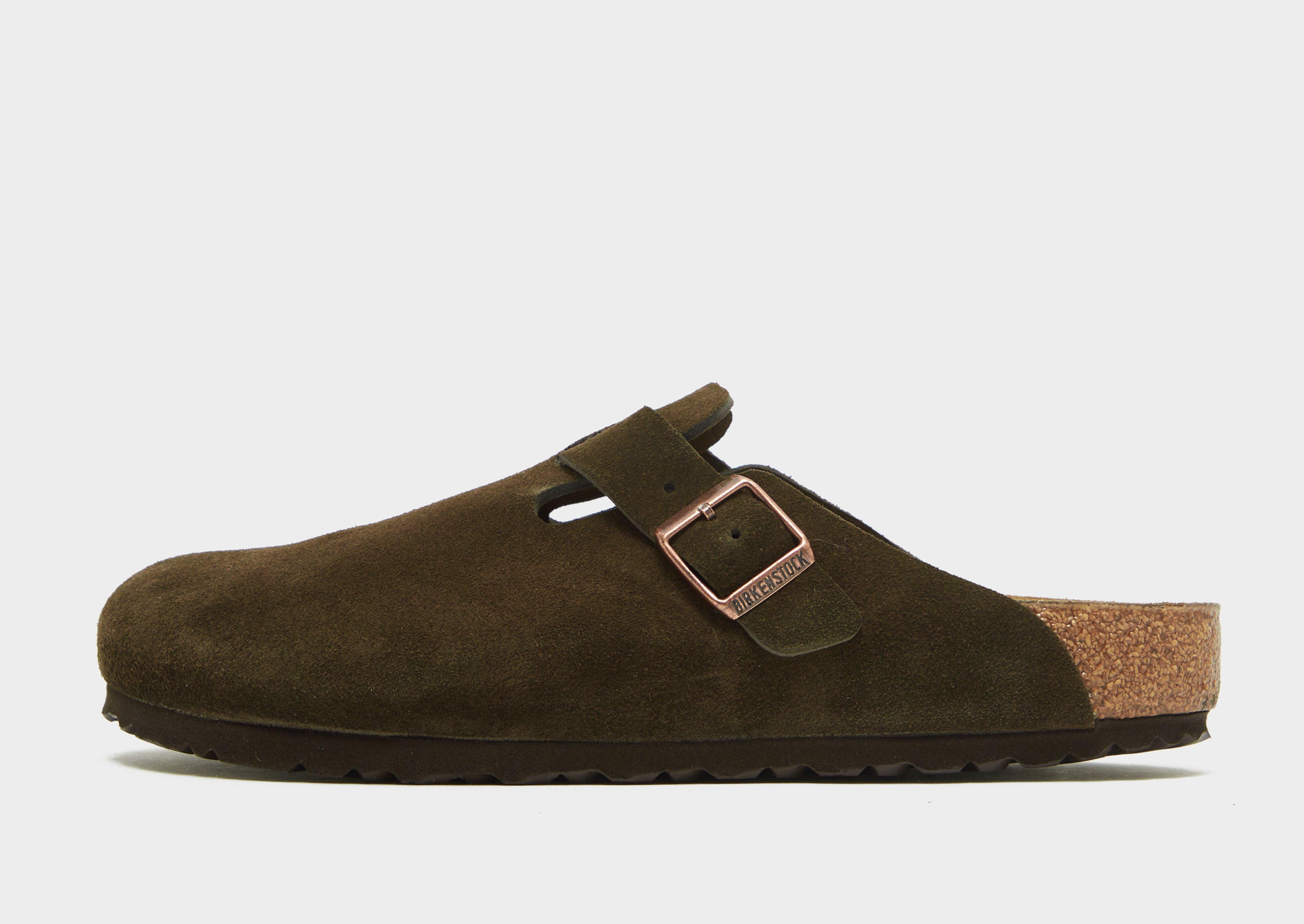 Keep it casual with these men's Boston clogs from Birkenstock. In a Mocha colourway, these clogs have a smooth suede upper for a premium feel. They have an adjustable buckle for a custom fit, and sit on a cushioned Soft Footbed for a smooth step. With a textured outsole for essential traction, they're signed off with classic Birkenstock branding._