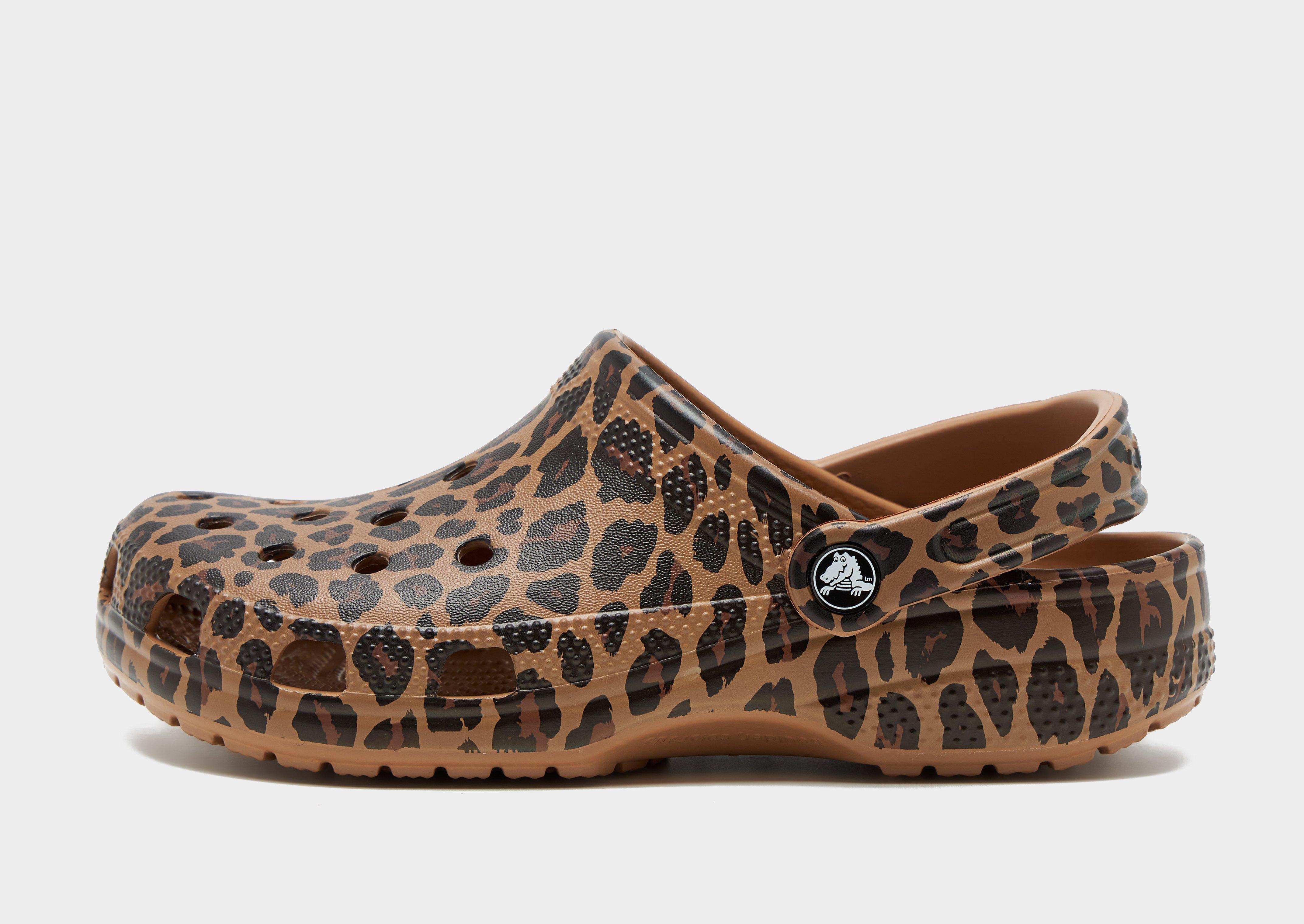 Bring out their wild side with these children's Classic Clog sandals from Crocs. A leopard print hits the Croslite upper and pivot heel strap. Breathable port holes keep their feet cool, while the dual-density footbed keeps them cushioned. Finished with a textured outsole and tonal Crocs branding._| Please note: Crocs fit wide. If you have narrow feet, we recommend that you size down. Crocs come with the US size embossed to the sole.