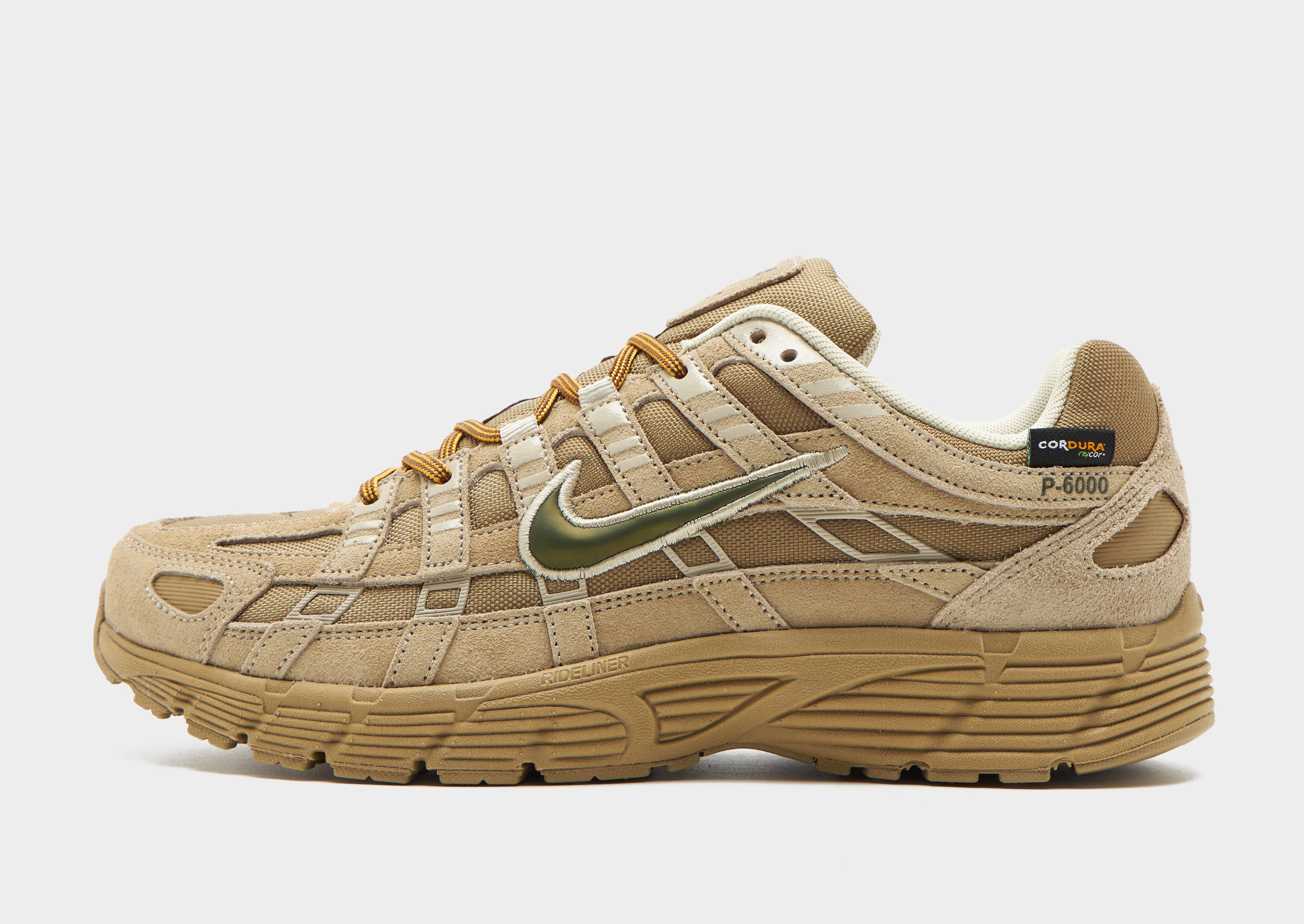 Rep retro, Y2K running style with these men's P-6000 shoes from Nike. In a Tan colourway with Khaki details, these 2000s inspired sneakers have a multilayered upper with airy mesh, leather and synthetic materials. They feature a tonal lace fastening with soft padding around the ankle collar for a locked-in fit, and sit atop a spongy cushioned insole for all-day comfort. They have a tough rubber outsole for grippy traction, and are finished with signature Swoosh branding throughout. Style Code: IH0946-202