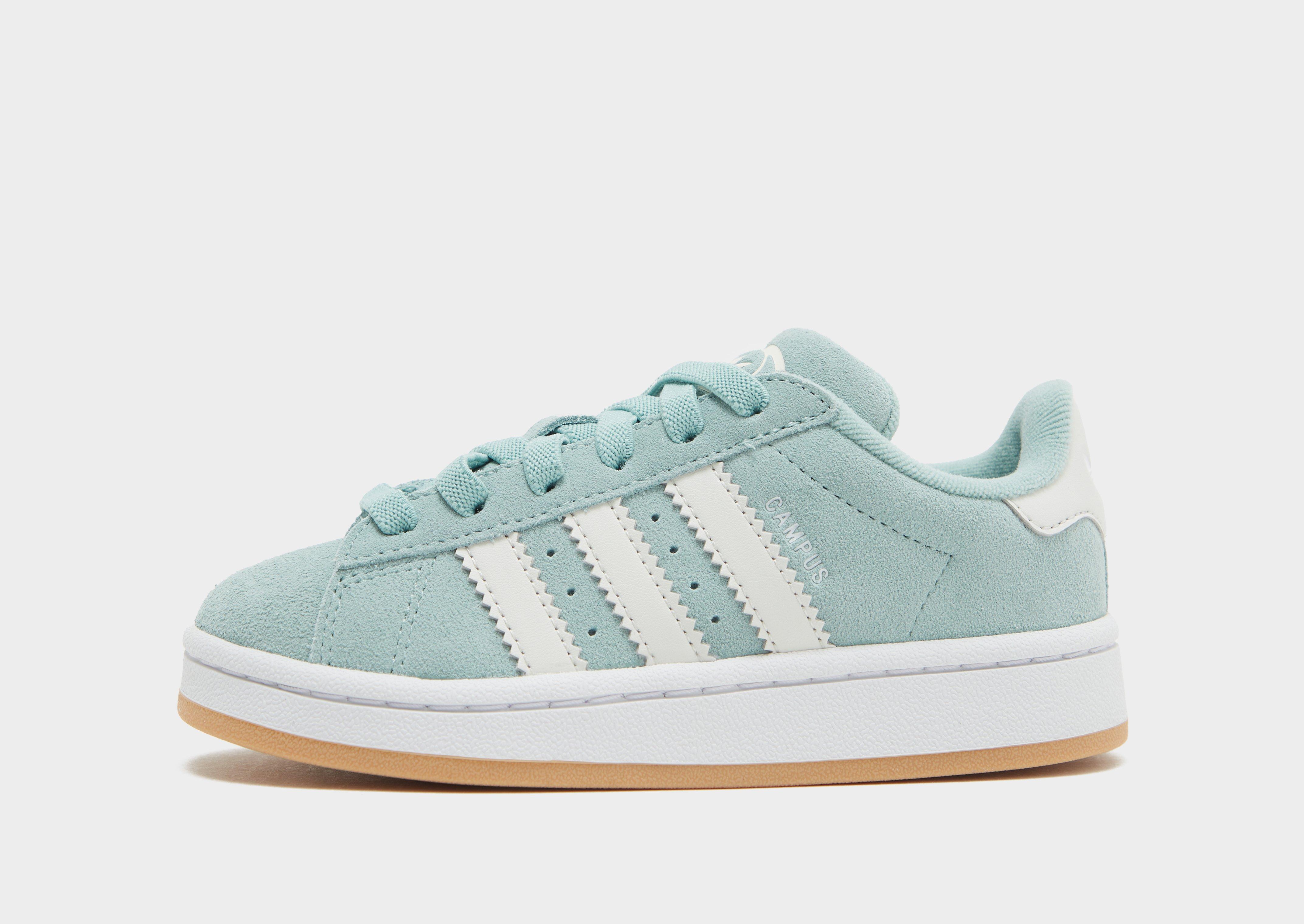 Step them into a JD-exclusive take on '80s style with these children's Campus 00s trainers from adidas Originals. In a Hazy Green and Orbit Grey colourway, these downsized sneakers mix suede and synthetic leather on the upper for a structured look and fit. They feature extra padding to the collar and tongue for a snug wear, while the cushioned platform sole sits above a Gum 3 rubber outsole for grip. Finished off with the 3-Stripes and Campus branding to the sidewall, while the Trefoil hits the tongue and heel. | JH8646