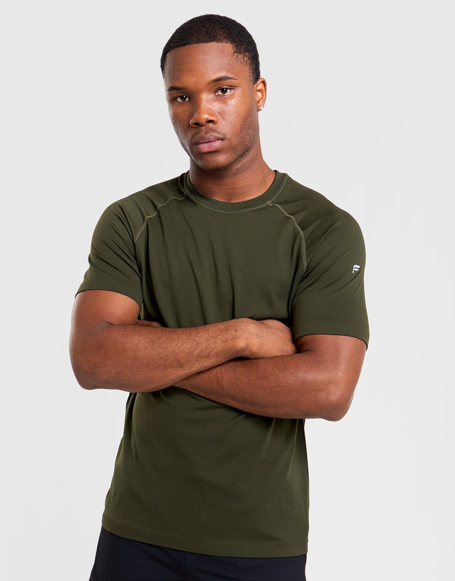 Add colour to your training rotation with this men's Fabletics Training Day T-Shirt in dark green. Designed with a standard fit and short sleeves, it offers comfortable performance for workouts or everyday wear. The dark green colourway brings a fresh alternative to neutral basics while maintaining versatility. Built for active lifestyles and reliable comfort, this tee is a solid addition to your activewear essentials. Style Code: SS203965511944