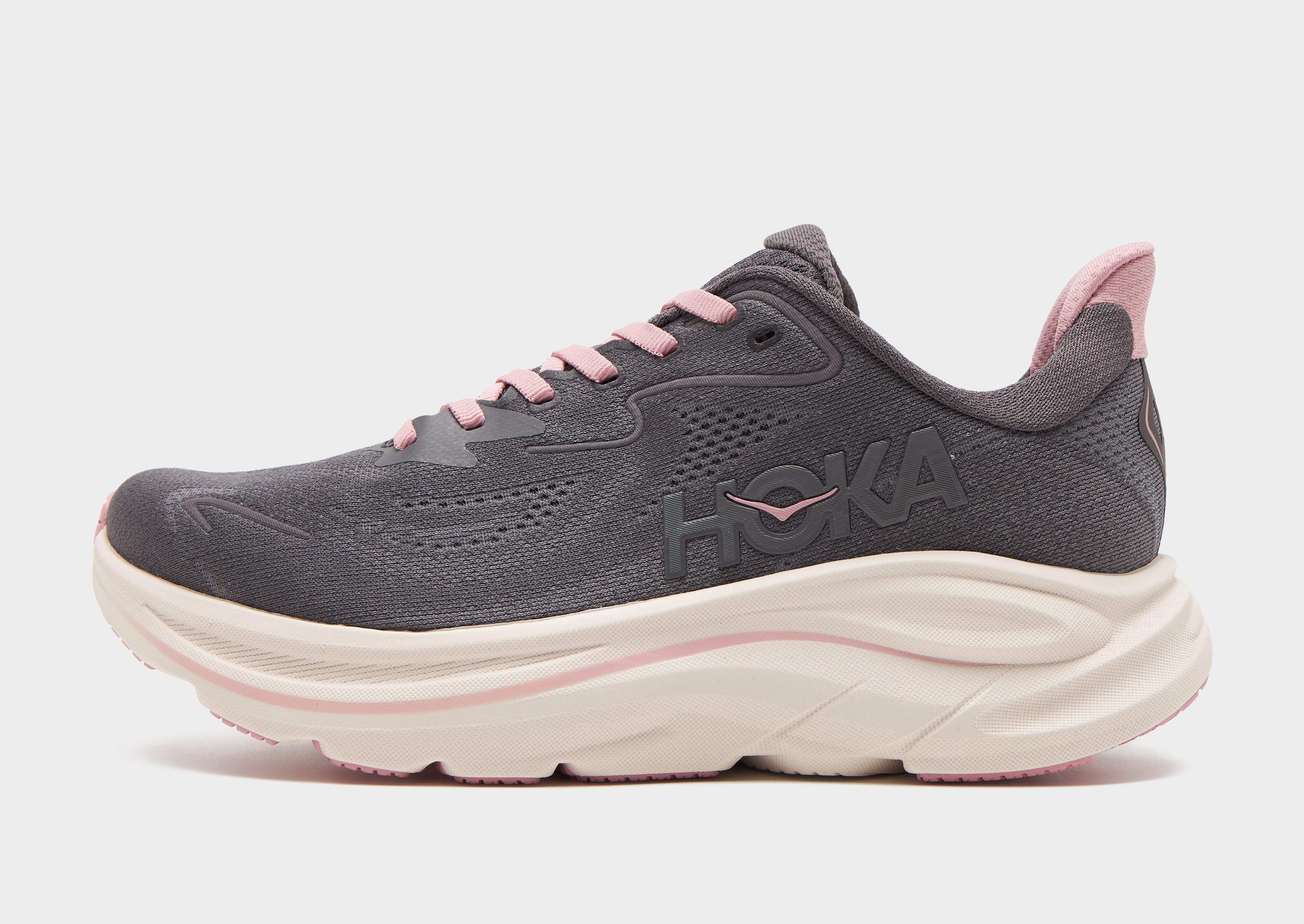 Hit your stride in these women's HOKA Clifton 10 running shoes. Featuring grey with rose and off-white accents, they deliver legendary HOKA cushioning for cloud-like comfort on every run. The lightweight construction and breathable upper make them perfect for training runs or daily miles. Built with HOKA's signature maximum cushioning and supportive design, these trainers are essential for runners who prioritize comfort without sacrificing performance. Style Code: 1162031-GXYD