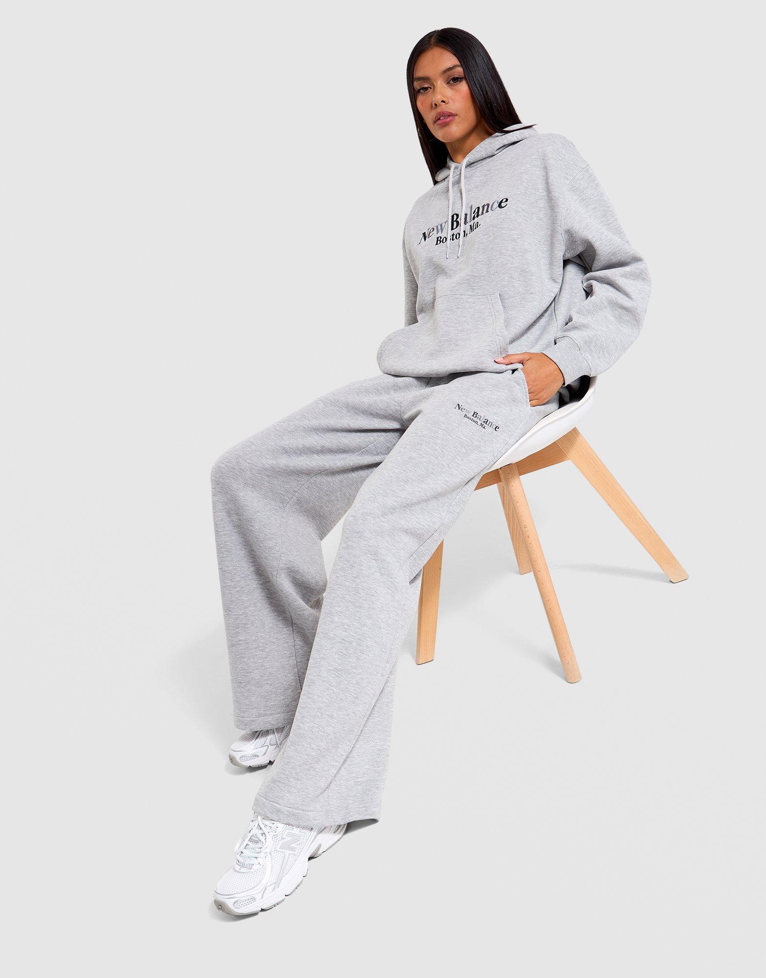 Complete your fit with these women's New Balance Tones Track Pants, exclusive to JD. Designed with a standard fit, they feature high brand read detailing in grey with navy and grey tones. The soft fleece construction delivers comfortable warmth for training or casual wear. Perfect for pairing with matching hoodies or crew sweatshirts, these track pants bring coordinated New Balance style to your rotation. Style Code: WP51971_AG