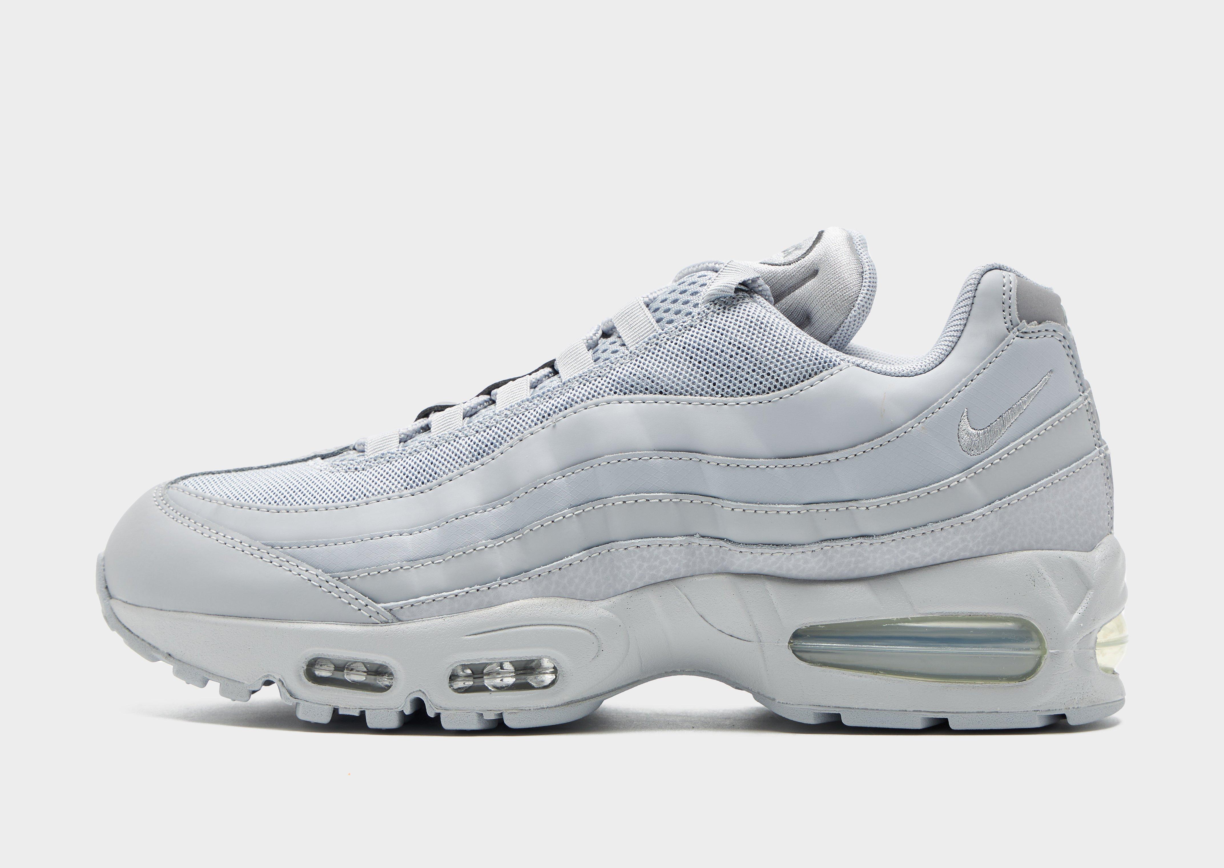 Step out in a Swoosh OG with these men's Air Max 95 shoes from Nike. Landing in a Grey colourway with tonal details, these JD-exclusive sneakers have airy mesh through the upper with real and synthetic leather for lasting wear. With stitched overlays to create the iconic wavy design lines, they have a lace fastening with a low-cut, padded ankle collar for a secure fit. They have visible Air units underfoot to cushion every step, with flex grooves in the midsole for a natural step. They have a tough rubber outsole for grippy traction, and are signed off with iconic Nike branding throughout. Style Code: HM8755-002