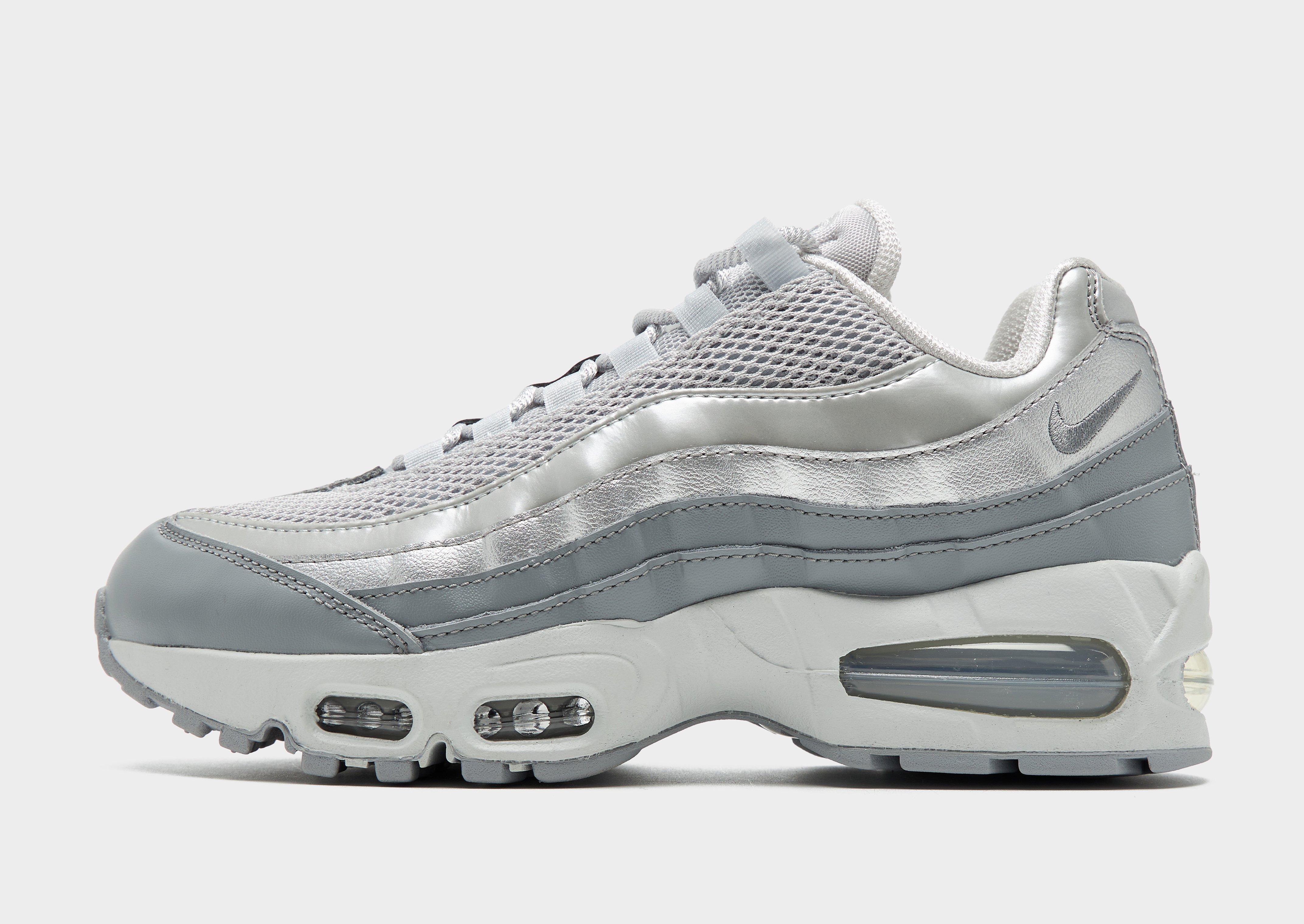 Step out in a Swoosh OG with these women's Air Max 95 shoes from Nike. Landing in a Grey Fog colourway with Silver details, these JD-exclusive sneakers have airy mesh through the upper with real and synthetic leather for lasting wear. With stitched overlays to create the iconic wavy design lines, they have a lace fastening with a low-cut, padded ankle collar for a secure fit. They have visible Air units underfoot to cushion every step, with flex grooves in the midsole for a natural step. They have a tough rubber outsole for grippy traction, and are signed off with iconic Nike branding throughout. Style Code: IB6398-001