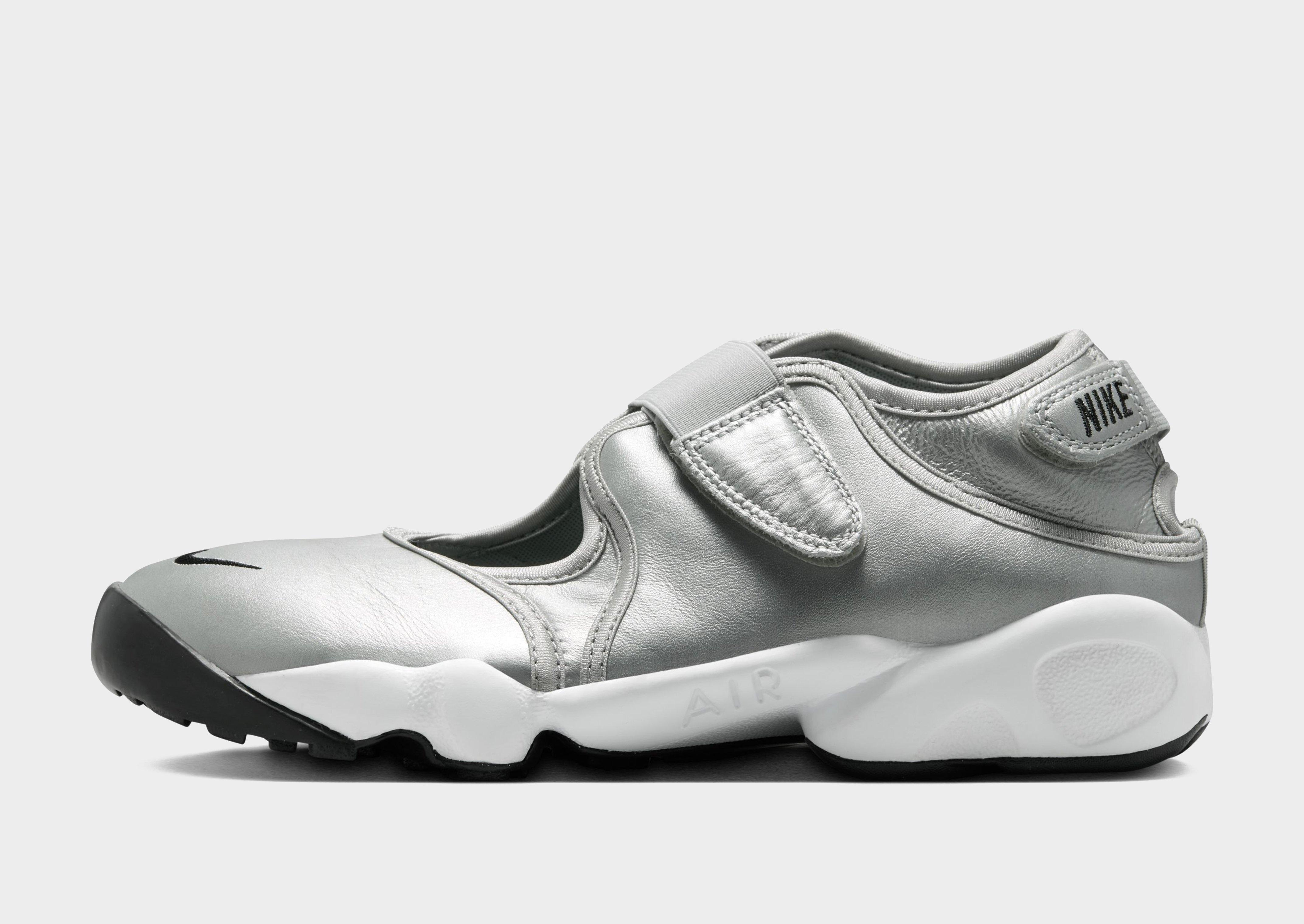 Step into iconic Nike heritage with these women's Air Rift trainers. Featuring the signature split-toe design in sleek silver with white accents, they bring unmistakable '90s running style to contemporary streetwear. The unique construction and adjustable strap system deliver a secure, customised fit that adapts to your foot. Built with lightweight cushioning and a flexible outsole, these trainers offer all-day comfort with standout design. Perfect for making a statement, the Air Rift combines nostalgic Nike DNA with modern wearability. Style Code: HM5737-003
