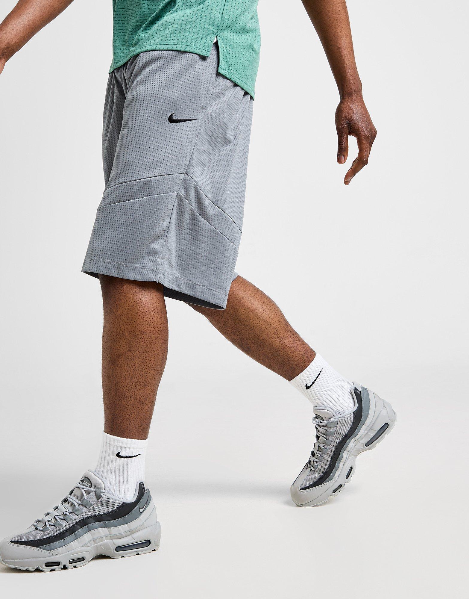 Bring a court-inspired edge to your street-ready 'fits with these men's Basketball Shorts from Nike. In a Cool Grey colourway, these relaxed-fit shorts are made with smooth, lightweight doubleknit mesh fabric for breathable comfort. Engineered with Dri-FIT tech to wick away sweat, they feature an elasticated waistband with a drawstring to adjust the fit, and side pockets for easy storage. Finished with a signature Swoosh logo at the thigh. Machine washable. | Our model wears a size M.