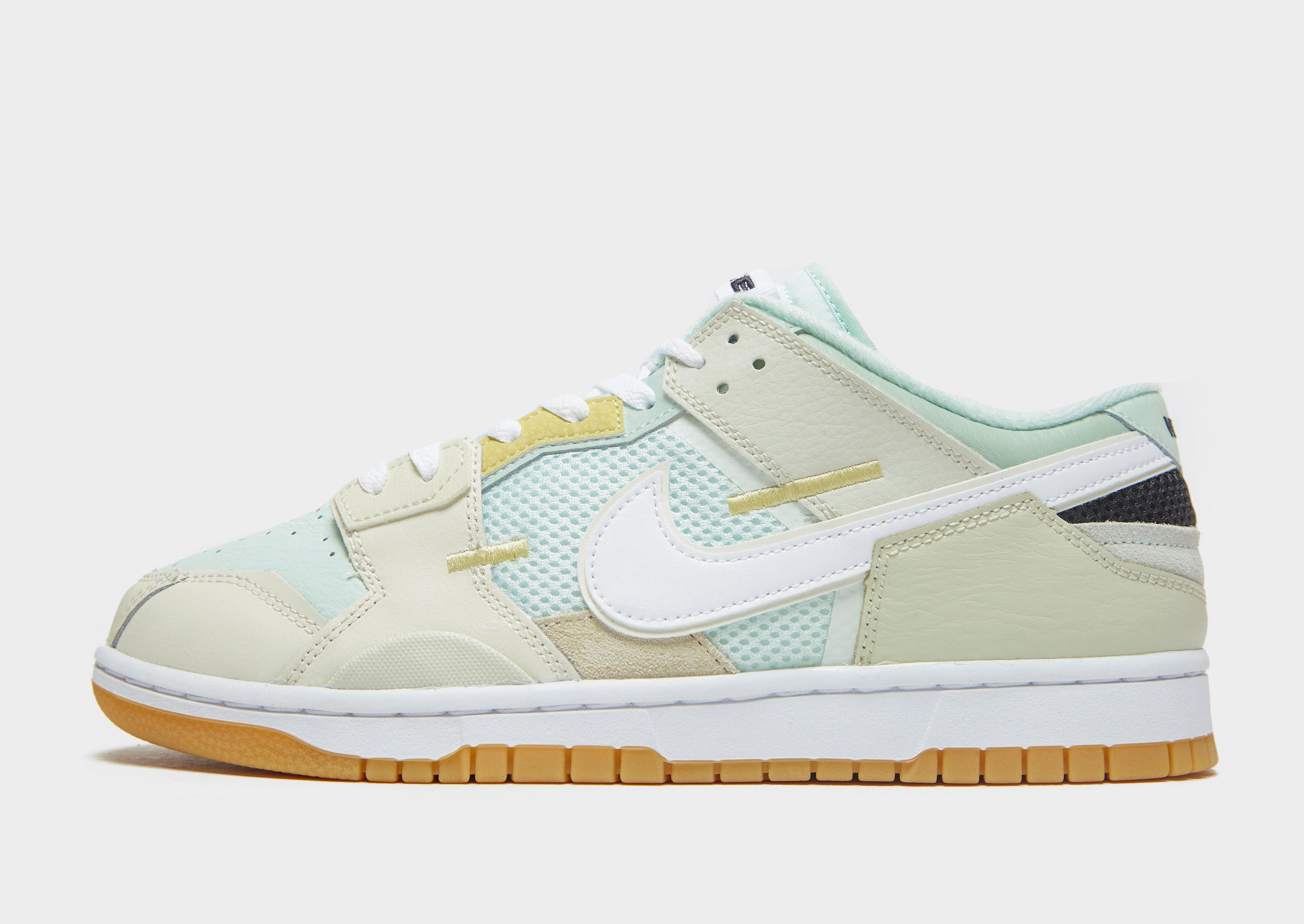 Retro b-ball style mixed with a custom, hand-crafted edge is what you get with the new Dunk Low Scrap sneaker from Nike. In a White, Sail and Sea Glass colourway, this iconic hoops sneak has a patchwork upper that combines light, breathable mesh with plush suede overlays for structure and support. They sit on a chunky foam midsole for premium cushioning and a super smooth ride, while the gum rubber tread supplies next-level traction from the courts to the streets. With perforations in the toe to keep your feet cool, these kicks feature a lace up fastening to lock you in and a sleek, low-cut padded ankle collar for a snug fit. Finished up with a Swoosh to the sidewalls and Nike branding to the tongue and heel.