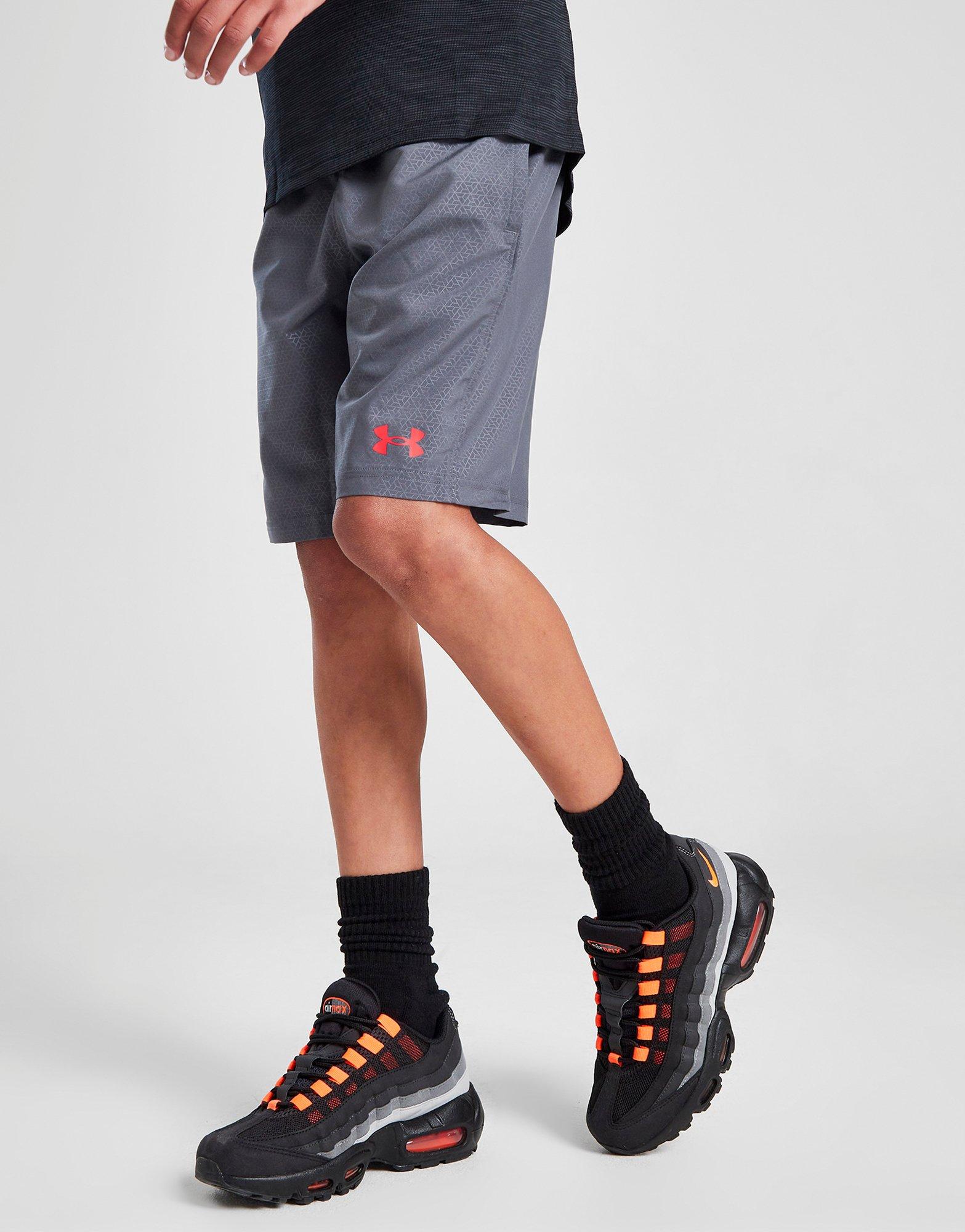 Take on training days with these junior' Emboss Shorts from Under Armour. In a Grey colourway with Red accents, these JD-exclusive shorts are cut from lightweight, breathable UA Tech fabric for cool comfort. They feature an elasticated waistband with a drawcord to adjust the fit, with side pockets to stash away your essentials. Finish up with wordmark branding to the waistband and the Under Armour logo above the hem. Machine washable.
