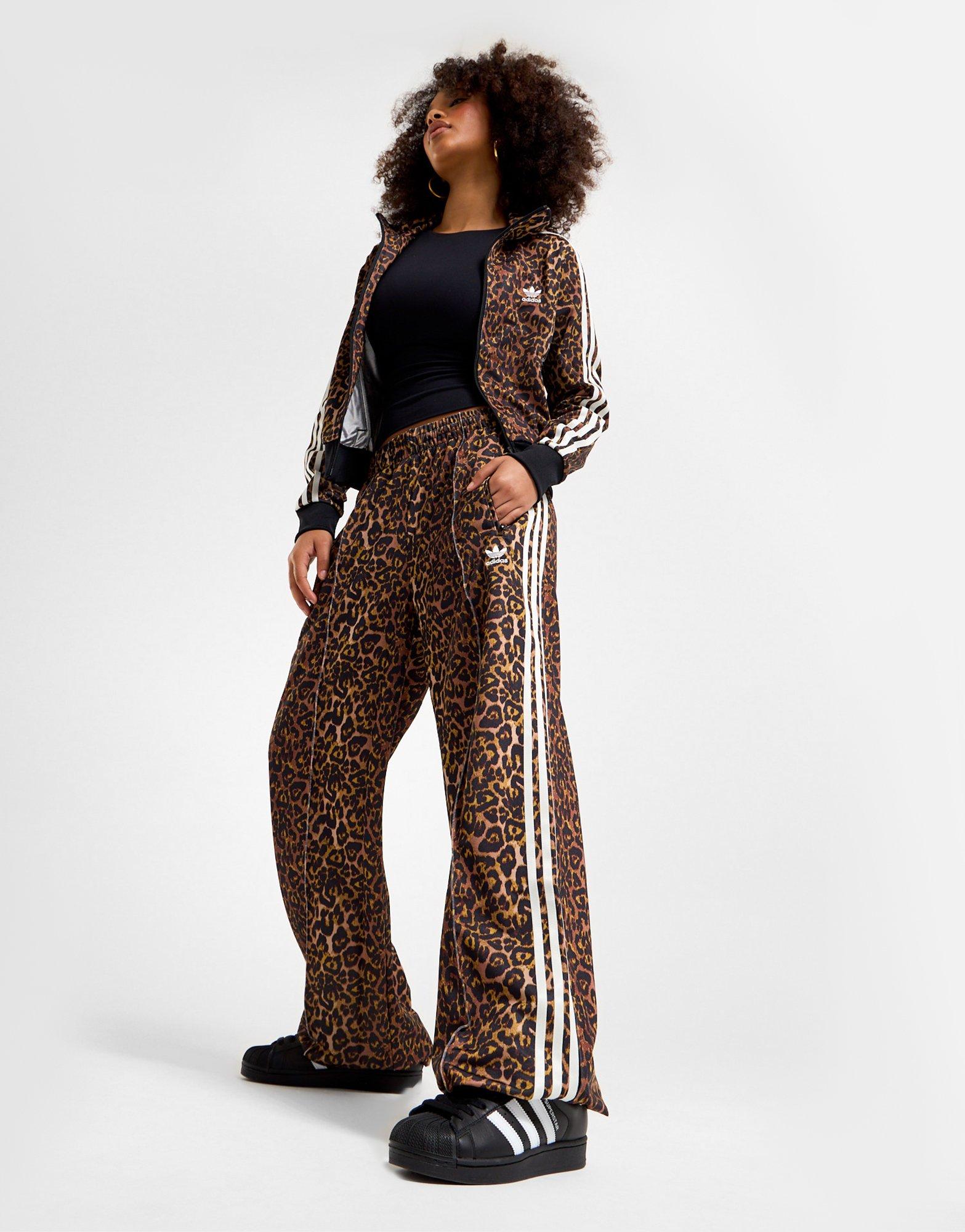 From the streets to the sofa, freshen up your rotation with these JD-exclusive women's Leopard Firebird Track Pants from adidas Originals. In an all-over leopard-print design, these regular fit, slightly structured pants are cut from soft recycled poly fabric for lasting comfort. They feature an elastic waistband with a drawcord so you can customise the fit and zippered side pockets to store your essentials. Finished up with the 3-Stripes down the sides and the signature Trefoil logo to the thigh.