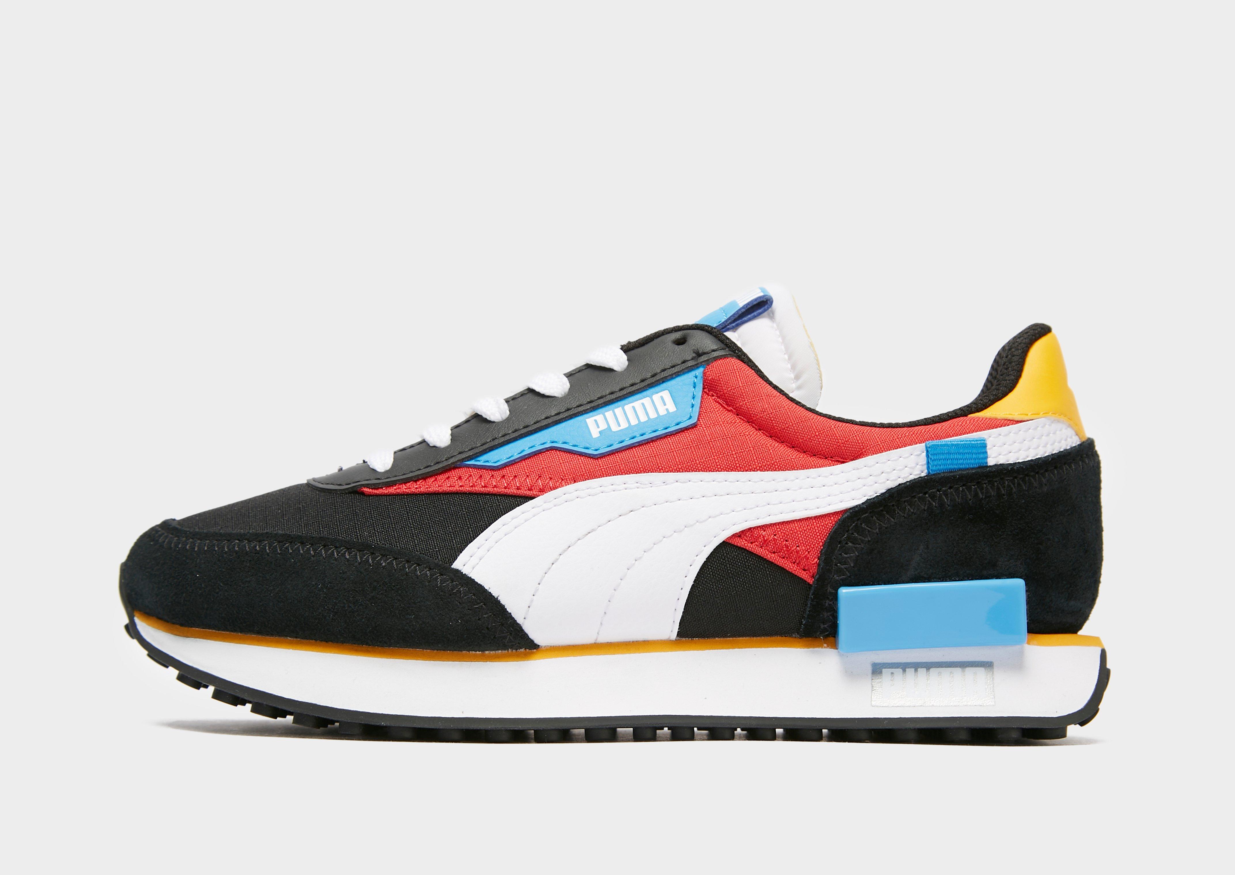 Step out in bold, retro style with these juniors' Future Rider Play On trainers from PUMA. Exclusive to JD, these sneakers have a lightweight nylon upper with suede overlays for premium support. They fave a multi-coloured, colour block design, and feature a secure lace up fastening and a shock-absorbing Federbein midsole underfoot for lightweight cushioning. With a grippy rubber tread, these trainers are finished with signature PUMA branding and a contrasting white Formstrip to the sidewalls.