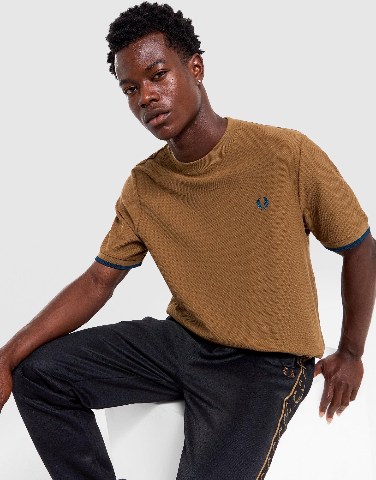 Keep it classic with this men's Fred Perry Pique Tip T-Shirt, delivering timeless style in premium pique fabric. Featuring a standard fit and short sleeves, it showcases signature tipping on a brown base with navy detailing. The breathable construction makes it perfect for casual wear or smart-casual occasions. A versatile piece that works year-round in any Fred Perry wardrobe. Style Code: M4654P96