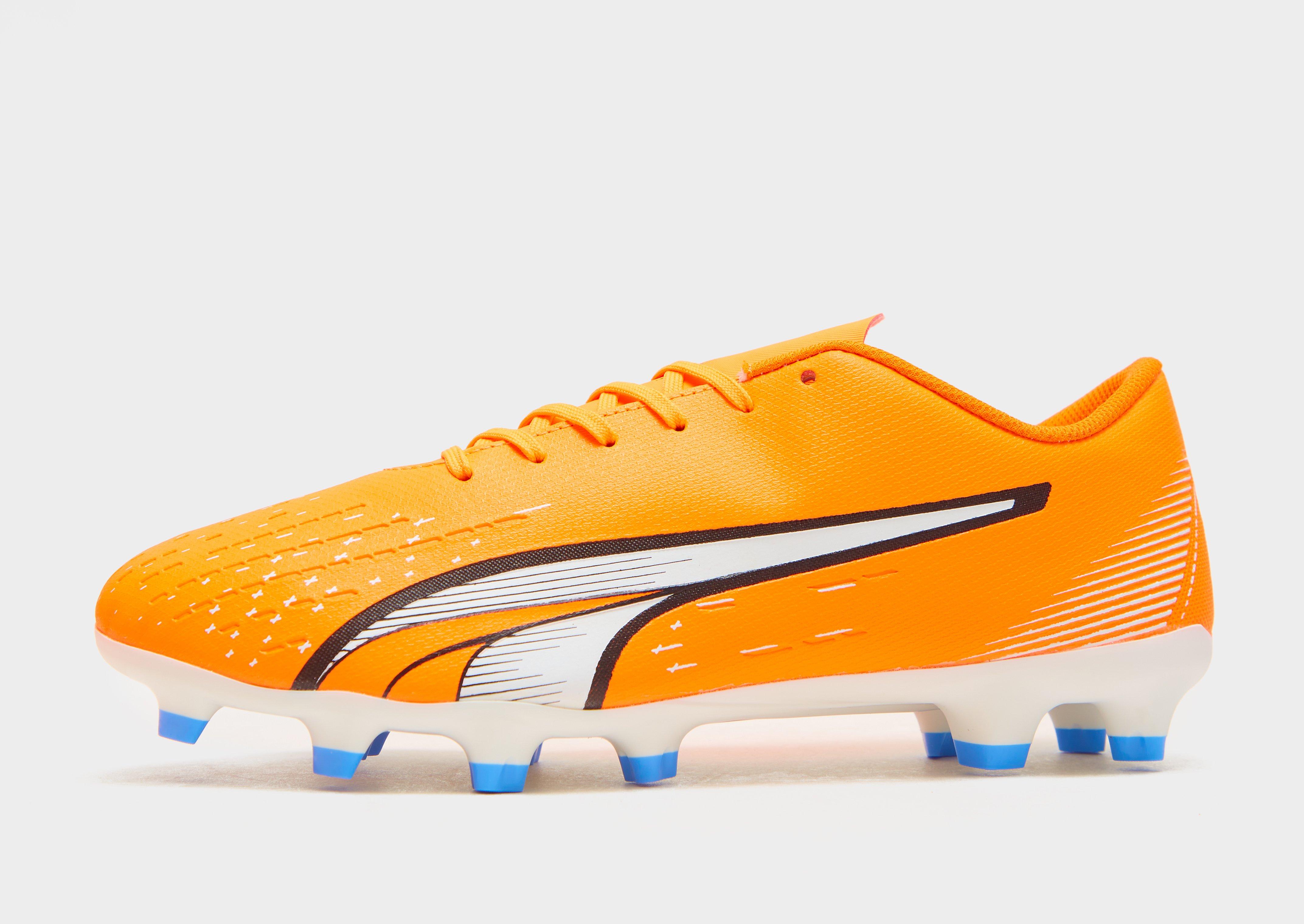 Take to the turf in these men's Ultra PL FG football boots from PUMA. In an Orange, Blue and White colourway, these boots are cut from light, durable PU in the upper with desbossed details for better ball control. They feature a lace fastening to lock you in, with a padded collar for added support, while underfoot, the TPU SPEEDPLATE offers grip and acceleration on firm ground. Finished up with the iconic Formstrip and signature PUMA branding.