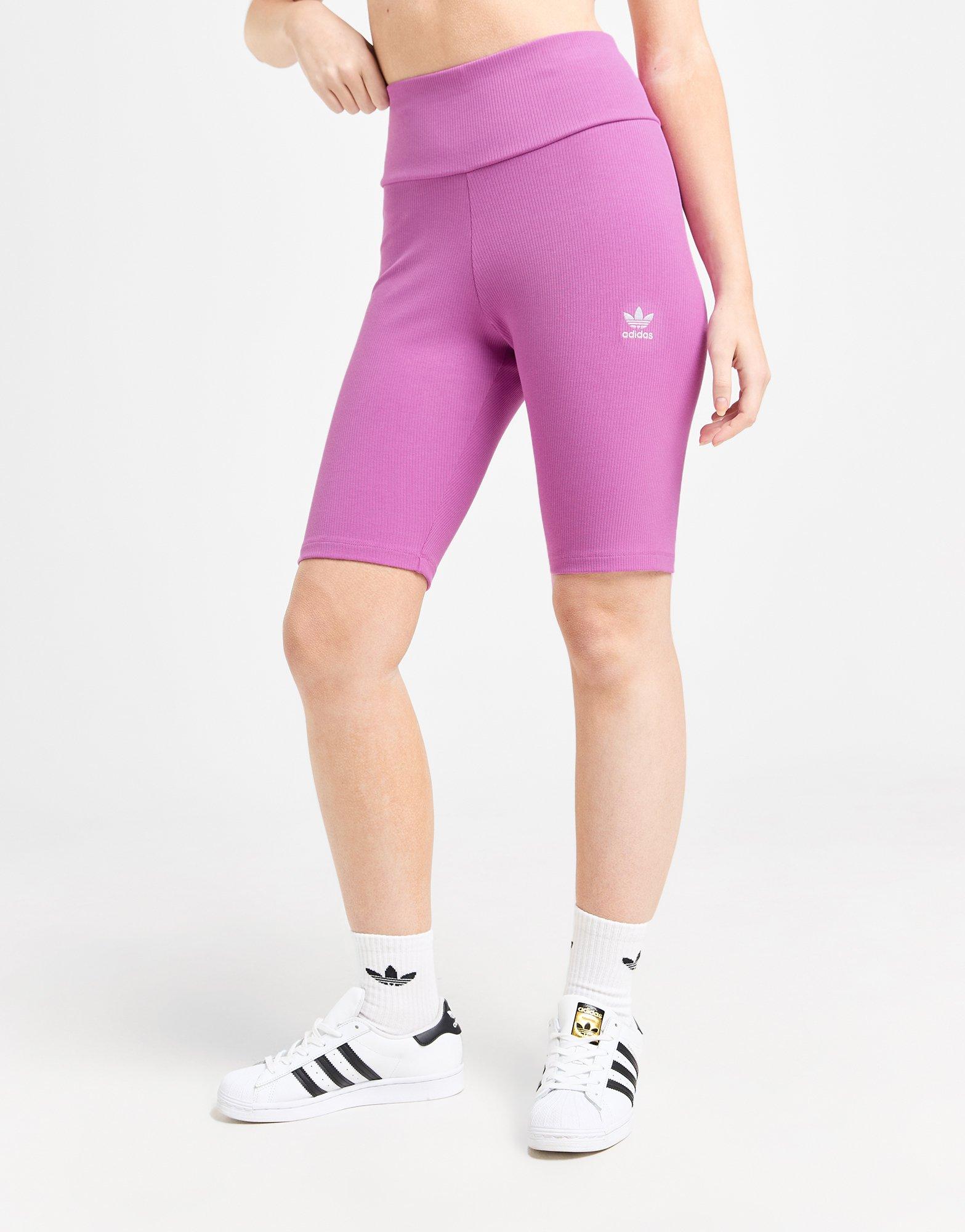 Stand out on off-duty days with these women's Essential Ribbed Cycle Shorts from adidas Originals. In a Semi Pulse Lilac colourway, these JD-exclusive shorts have a high-rise shape and an elasticated waistband to secure them in place. They're made from a stretchy, ribbed cotton and viscose fabric for total comfort. Finished off with the signature Trefoil to the left hip. Machine washable. | Our model is 5'7" and wears a size small. | JG8773