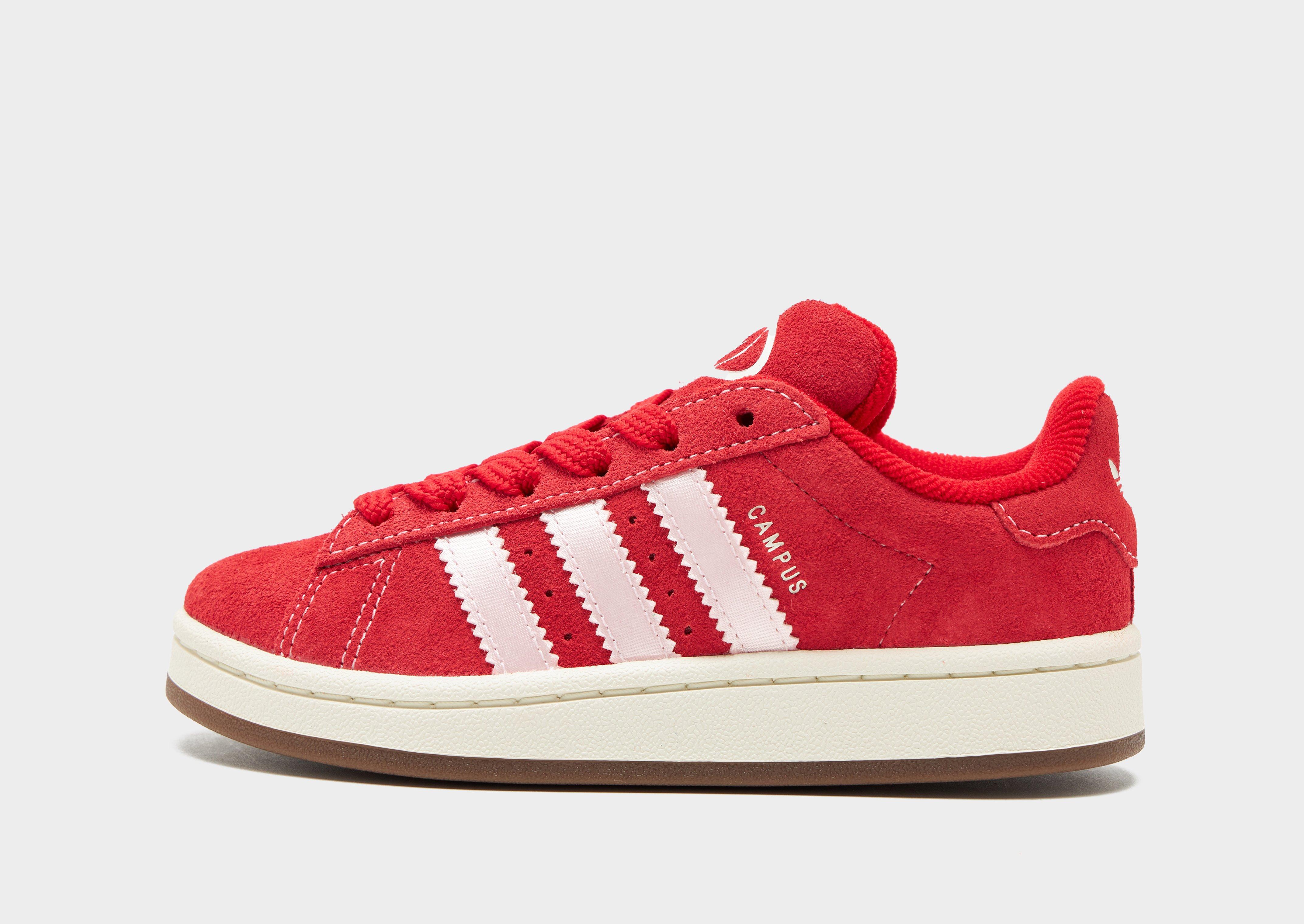 Add a skate-inspired shoe to your sneaker rotation with these children's Campus 00s from adidas Originals. Coming in a Red colourway with Pink details, these JD-exclusive sneakers have a soft suede upper for lasting wear. Taking oversized elements from the '80s OG, they feature a chunky lace-up fastening with thick padding around the collar for a locked-in fit. They sit above a lightweight cushioned midsole for all-day comfort, while a grippy, gum rubber outsole delivers easy traction. Finished with supersized 3-Stripes to the sidewalls, a classic Campus wordmark, and the legendary Trefoil logo to sign off. Style Code: HP7222