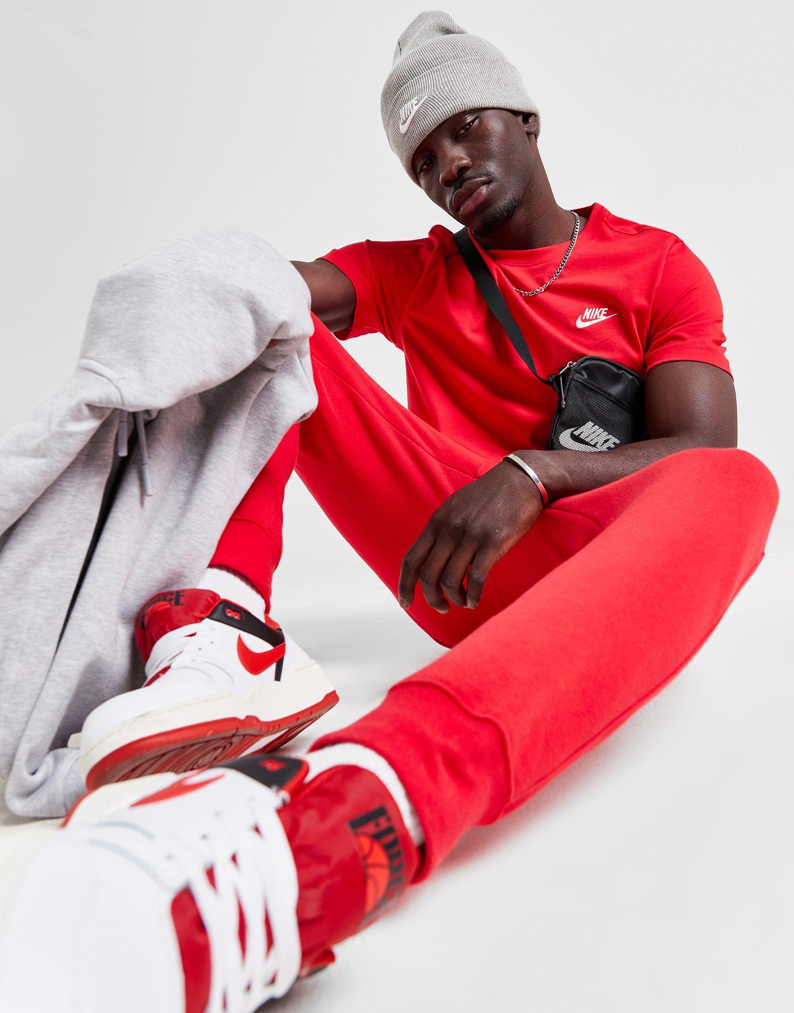 Rep some signature Swoosh style with this men's Core T-Shirt from Nike. In a statement university red colourway, this short sleeve tee is made from a comfy cotton fabric to keep you snug all day. With short sleeves and a classic crew neckline for an optimised fit, this regular cut tee is finished with contrasting white Swoosh branding. | Our model is 5'11" and wears a size medium.
