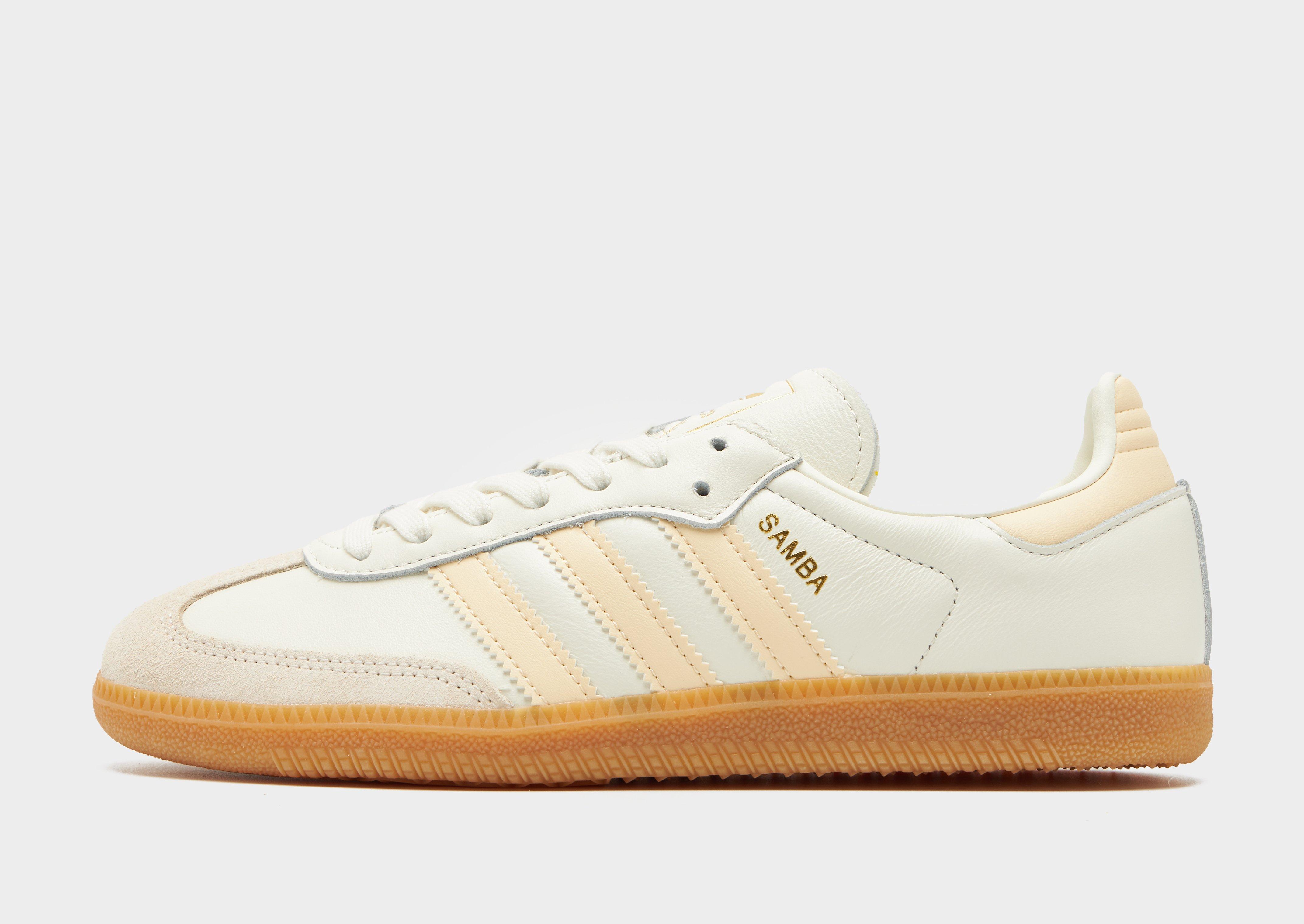 Add a streetwear icon to your footwear rotation with these men's Samba OG shoes from adidas Originals, exclusive to JD. Taking cues from the original football-inspired Samba design first introduced in the 1950s, these iconic terrace sneakers let you imagine you're walking in those vintage footsteps. Built with an Off White leather upper, they feature a suede toe guard and are sat upon a responsive gum midsole. With tonal laces and signature adi 3-stripes to the side in White, they're signed off with 'Samba' wording to the side, and iconic Trefoil branding to the tongue. Style Code: JQ1093