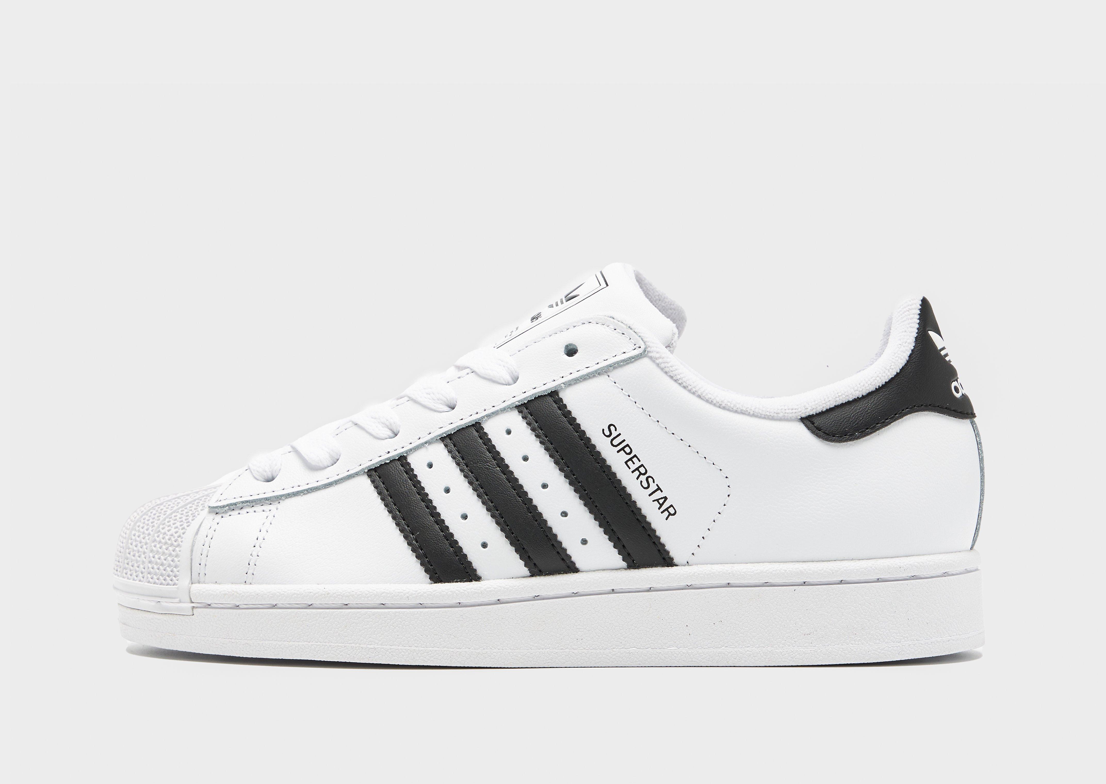 The adidas Superstar II shoes are back and ready to dominate the streets once more. With its iconic shell toe design and serrated 3-Stripes, these shoes have spent over 50 years fusing sport and street style. Revamped in clean, versatile black and white, these juniors' trainers provide all-day comfort with a moulded sockliner and structured leather upper. The stable rubber cupsole with classic herringbone traction pattern keeps you grounded and going in class and style. Style Code: JH9976