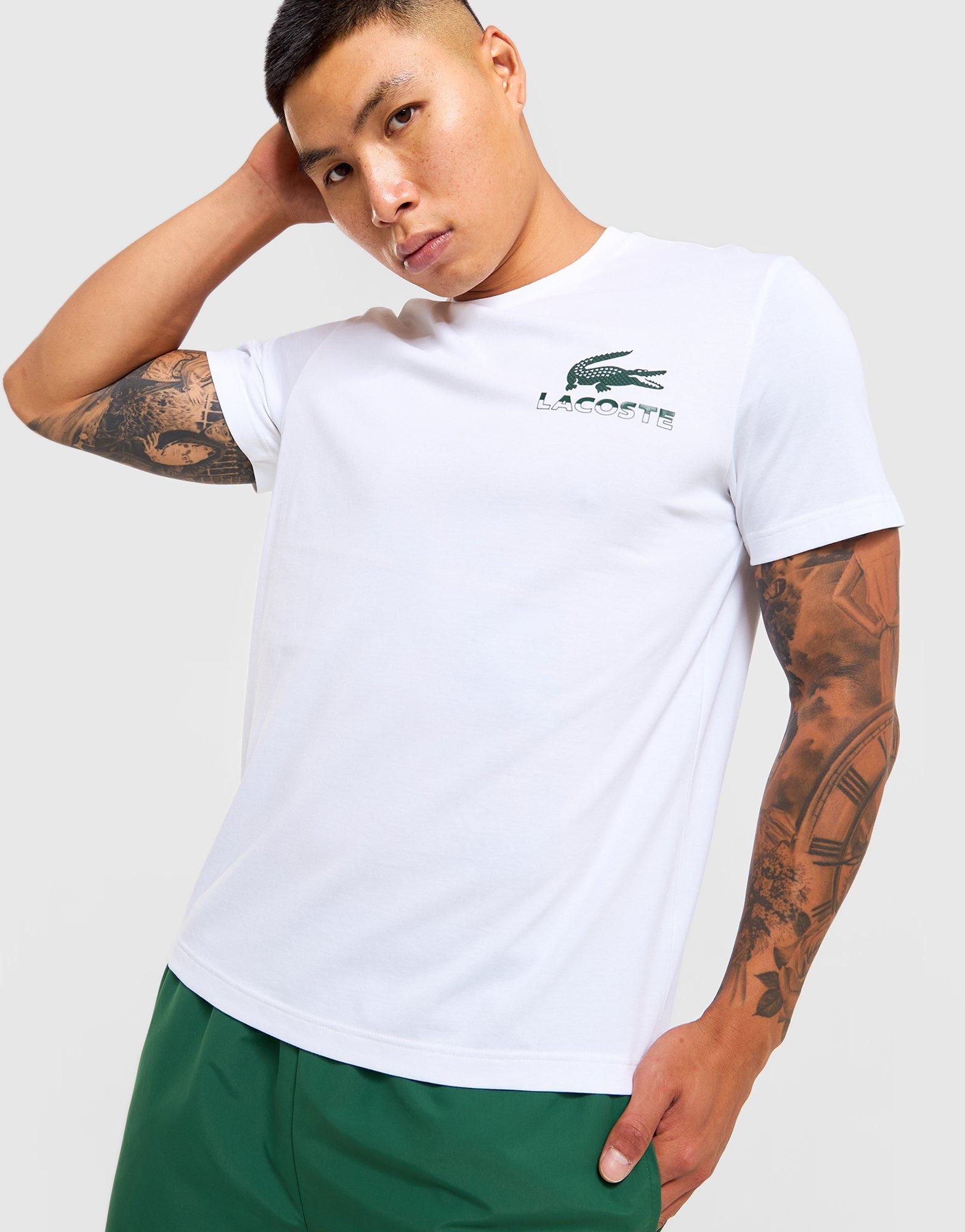 Stay fresh in the men’s Lacoste Croc T-Shirt, exclusive to JD. Standard fit and short sleeves deliver casual comfort for everyday wear. White colourway with front and back logo graphics adds sporty sophistication to your outfit. Pair with Lacoste shorts or jeans for effortless style. Style Code: TH5517001