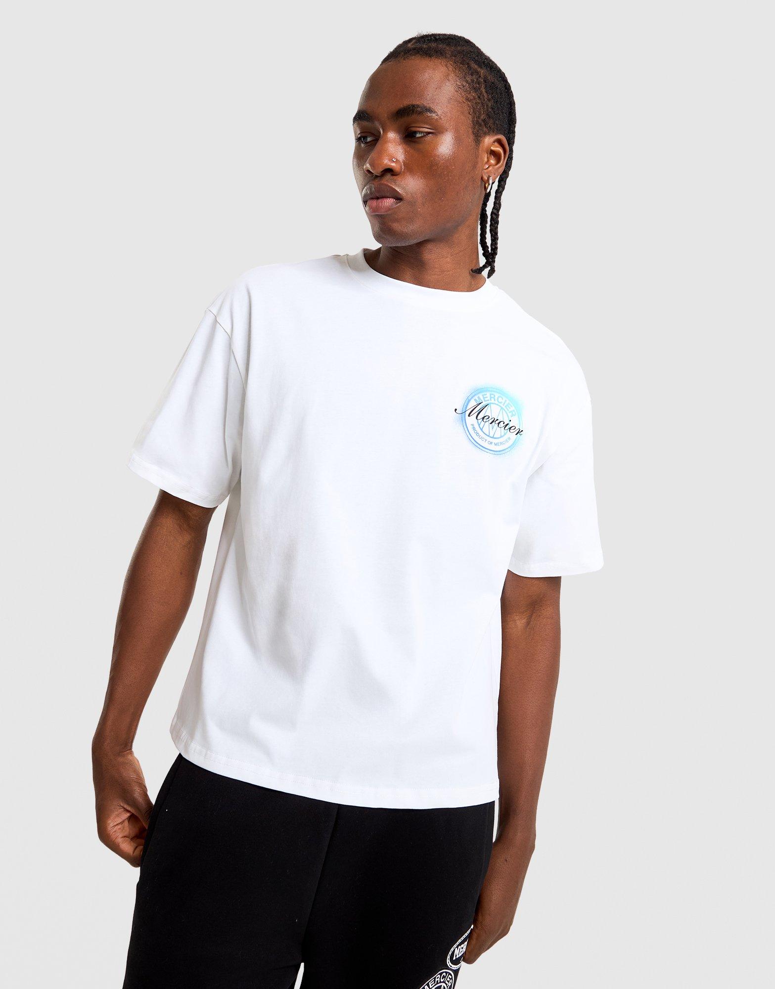 Bring bold graphics to your wardrobe with this men's Mercier Back Graphic Poster T-Shirt, exclusive to JD. Designed with a standard fit and short sleeves, it features white with black and blue poster-style back graphics. The eye-catching design makes it perfect for streetwear styling. Built with Mercier quality and contemporary graphics, this tee is a statement piece for casual rotations. Style Code: MERC1168