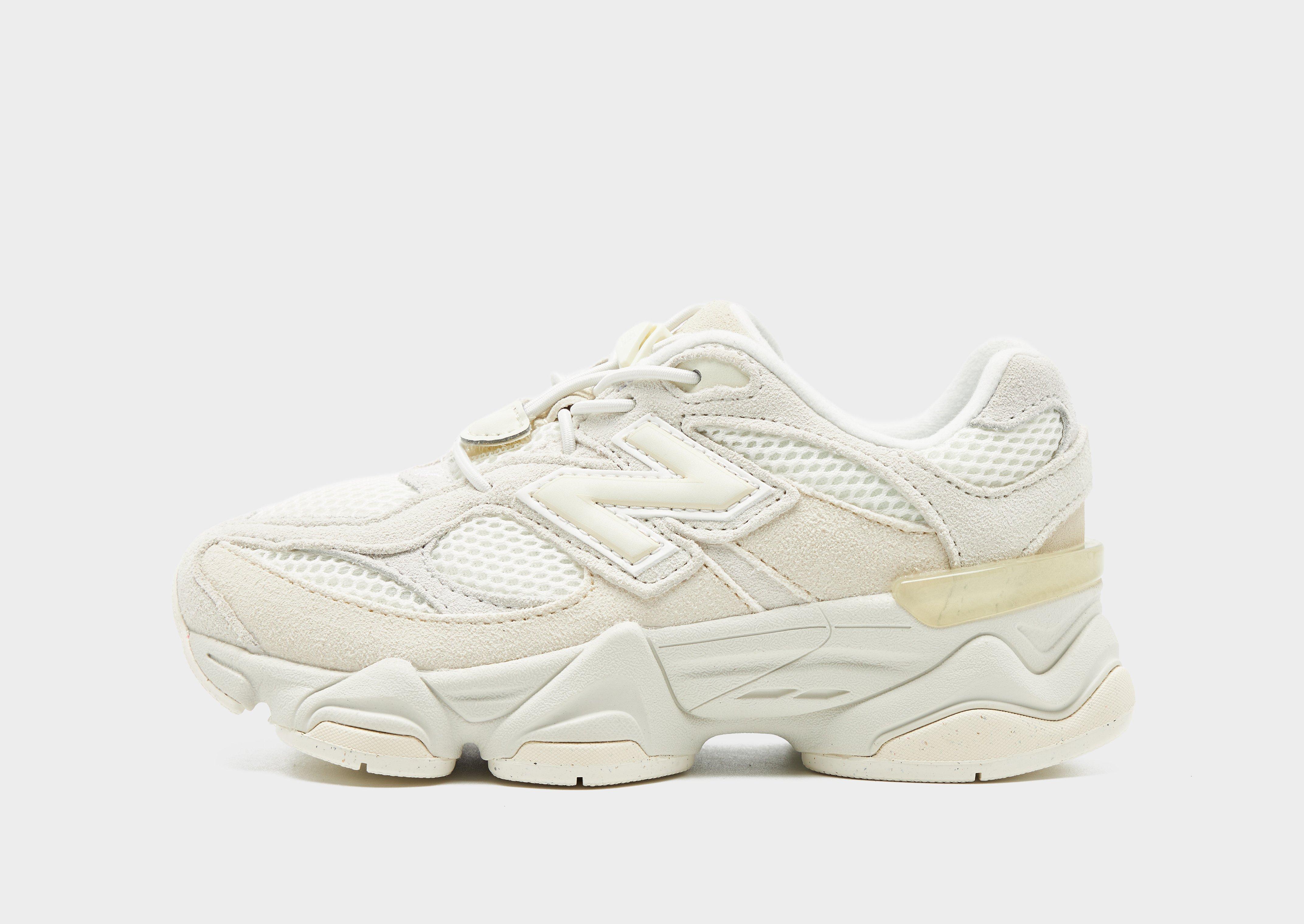 Refresh your kick collection with these children's 9060 shoes from New Balance. In a Cream colourway with White details, these low-profile sneakers have a light and breathable mesh upper with suede overlays for premium support. They feature a lace fastening with a padded ankle collar for a snug, supportive fit and a CR device to the heel for added stability. Underfoot is a dual-density midsole that's equipped with ABZORB and SBS cushioning for a responsive ride, and a diamond rubber outsole for essential traction. Signed off with New Balance branding to the tongue that's inspired by the original 991 lace jewel. Style Code: PV9060ER
