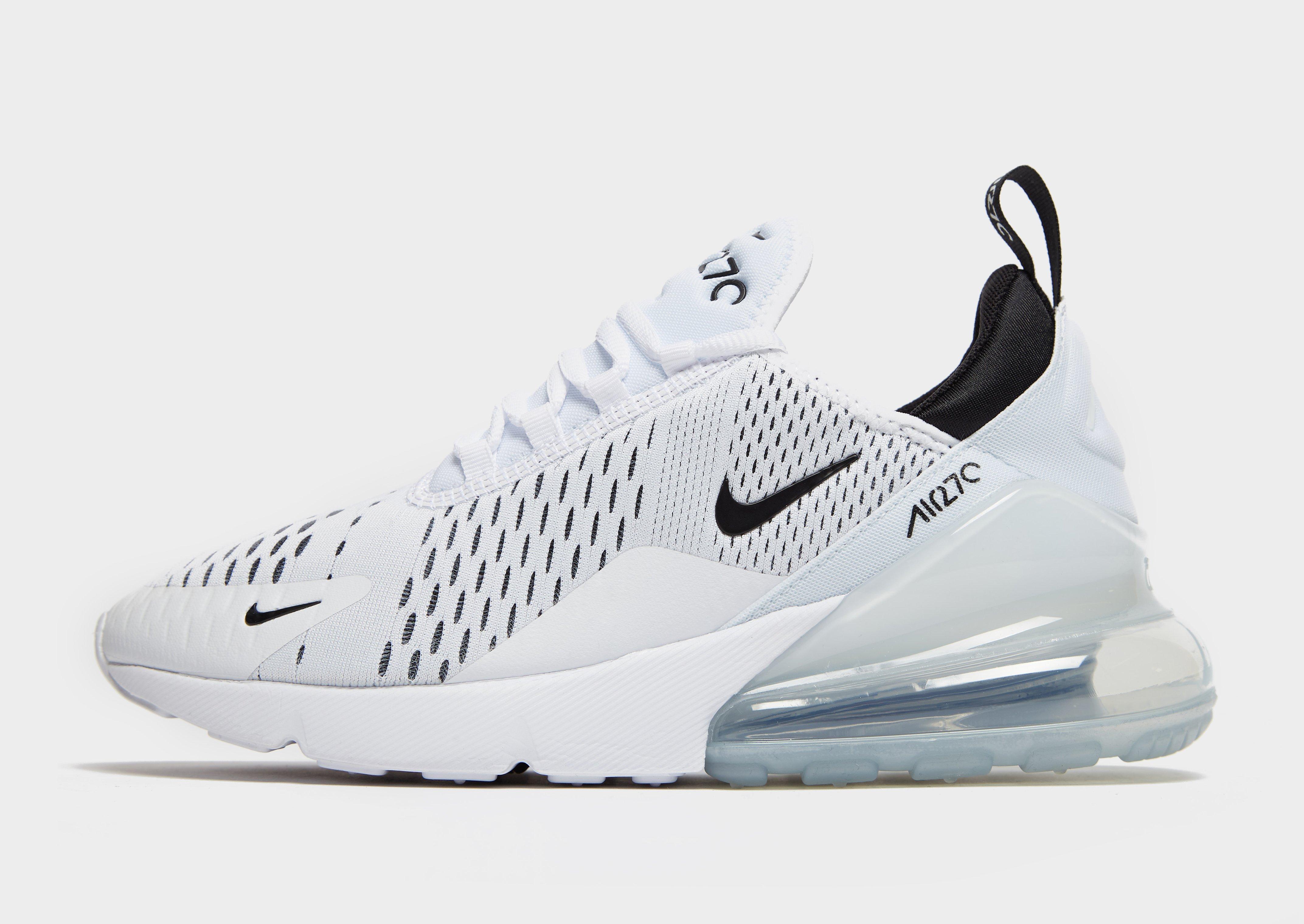 Propelling the Swoosh into the future, these women's Air Max 270 kicks from Nike are equipped with the tallest heel bag to date. Derived from older, nostalgic models, they take inspiration from the Air 180 and Air Max 93 - but are a brand new silhouette designed purely as a lifestyle sneak. The lightweight trainers are built with a breathable mesh and canvas upper, which comes in a fresh white colourway. Sat on a new, Max Air unit that measures 32mm (the tallest Nike have made!), they promise next-level cushioned comfort, with 270 degrees of visible Air. Finished with the iconic Swoosh to the sidewalls and Air 270 branding to the tongue and heel overlay.