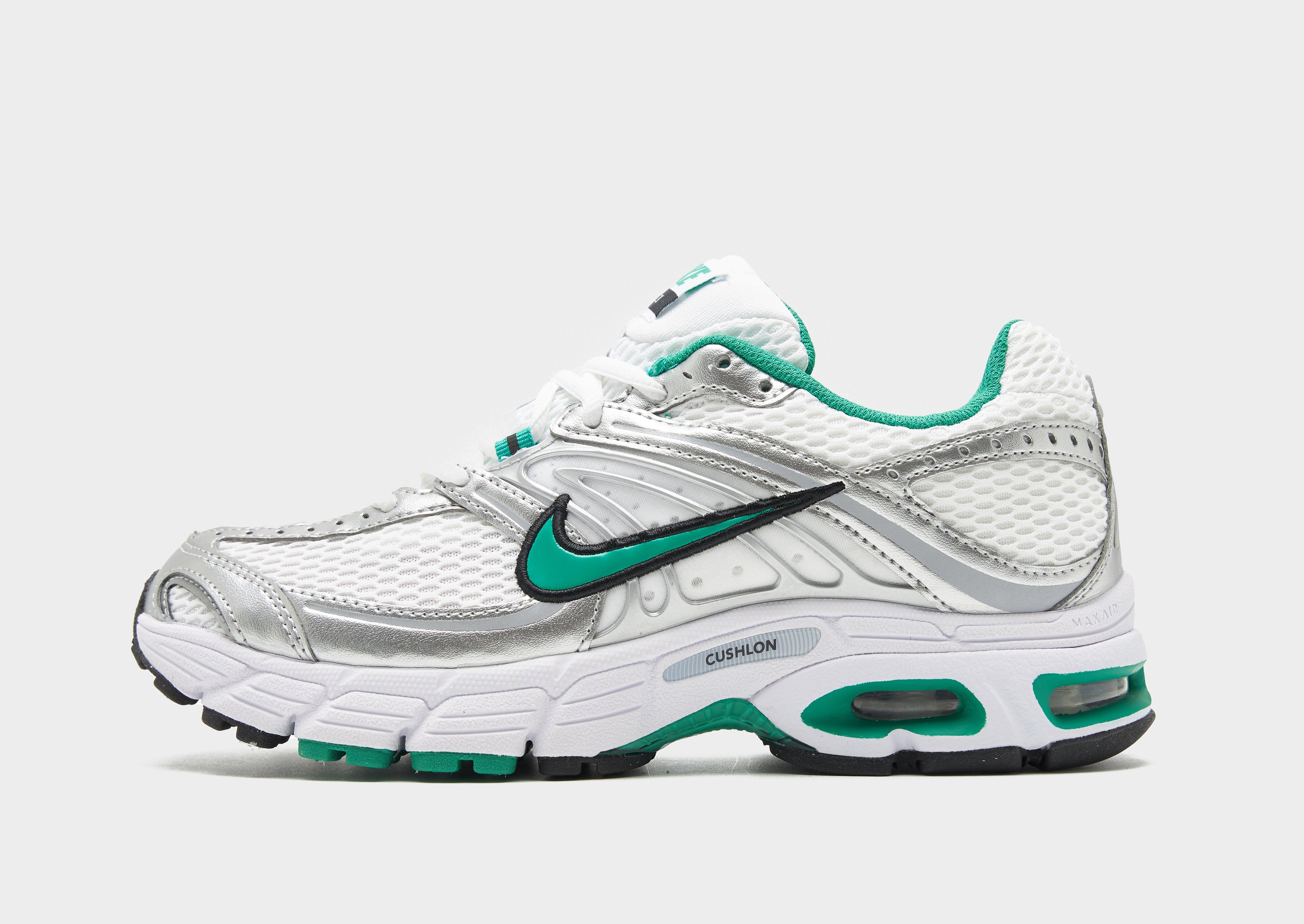 Put old-school energy back on the streets with these women's Air Max Moto 2K sneakers from Nike. In a White colourway with Metallic Silver and Green accents, these runners have performance-inspired design lines and a layered mesh and synthetic upper. Underfoot, the plush foam midsole is packed with multiple Max Air bubbles for next-level cushioning. Finished off with a solid rubber outsole, the Swoosh logo and a Moto 2K label. Style Code: HQ2056-102