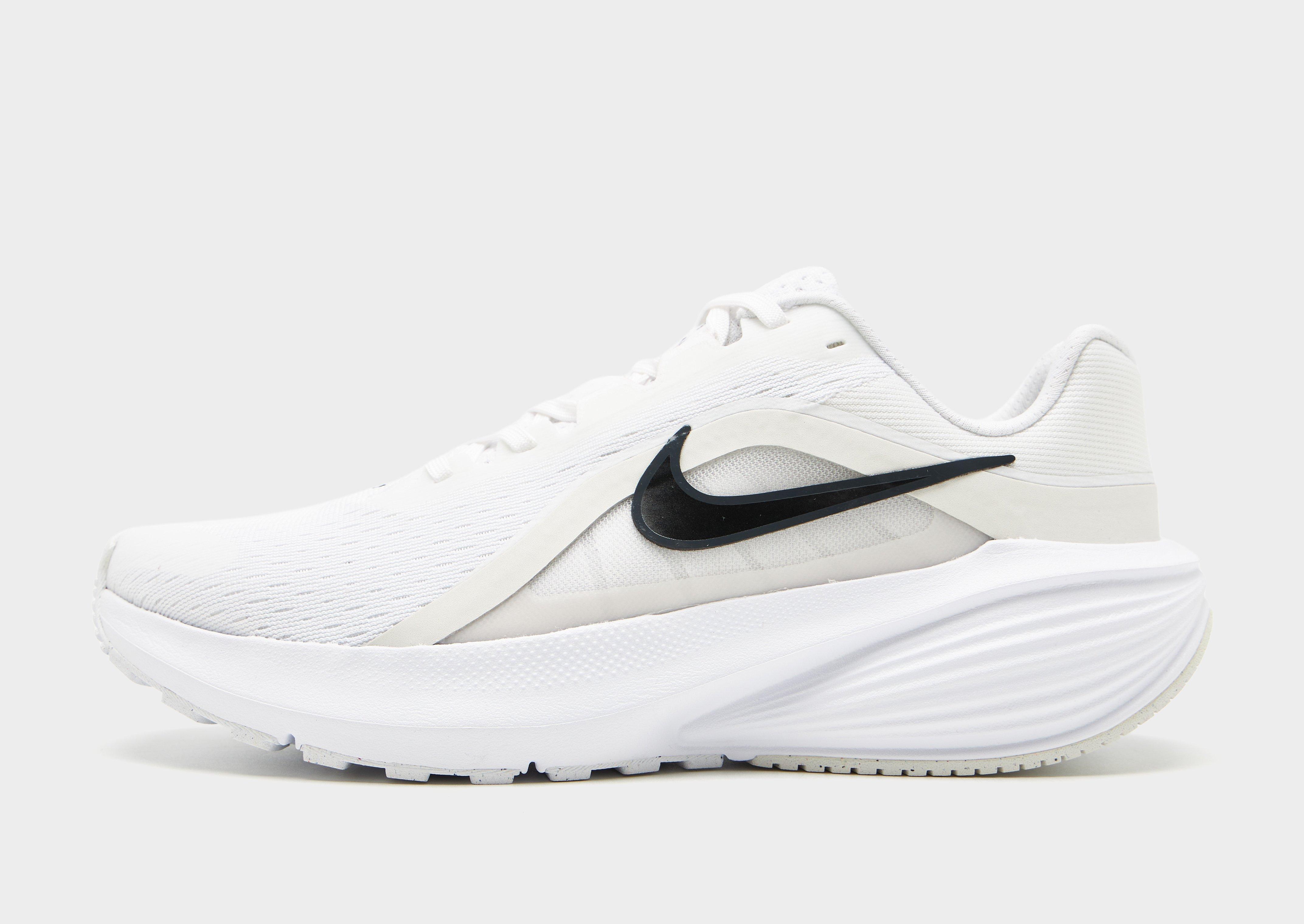 Go for miles with these men's Downshifter 14 running shoes from Nike. In a White colourway with Grey details, these runners have a revamped upper with light, breathable mesh and synthetic skin overlays for lasting wear. They feature an updated internal fit band for midfoot support and stability, while a soft, lightweight foam midsole offers a smooth ride. They have a grippy rubber outsole that's made from at least 15% Nike Grind and are finished off with the Swoosh logo to the sidewalls. Style Code: IB1895-101