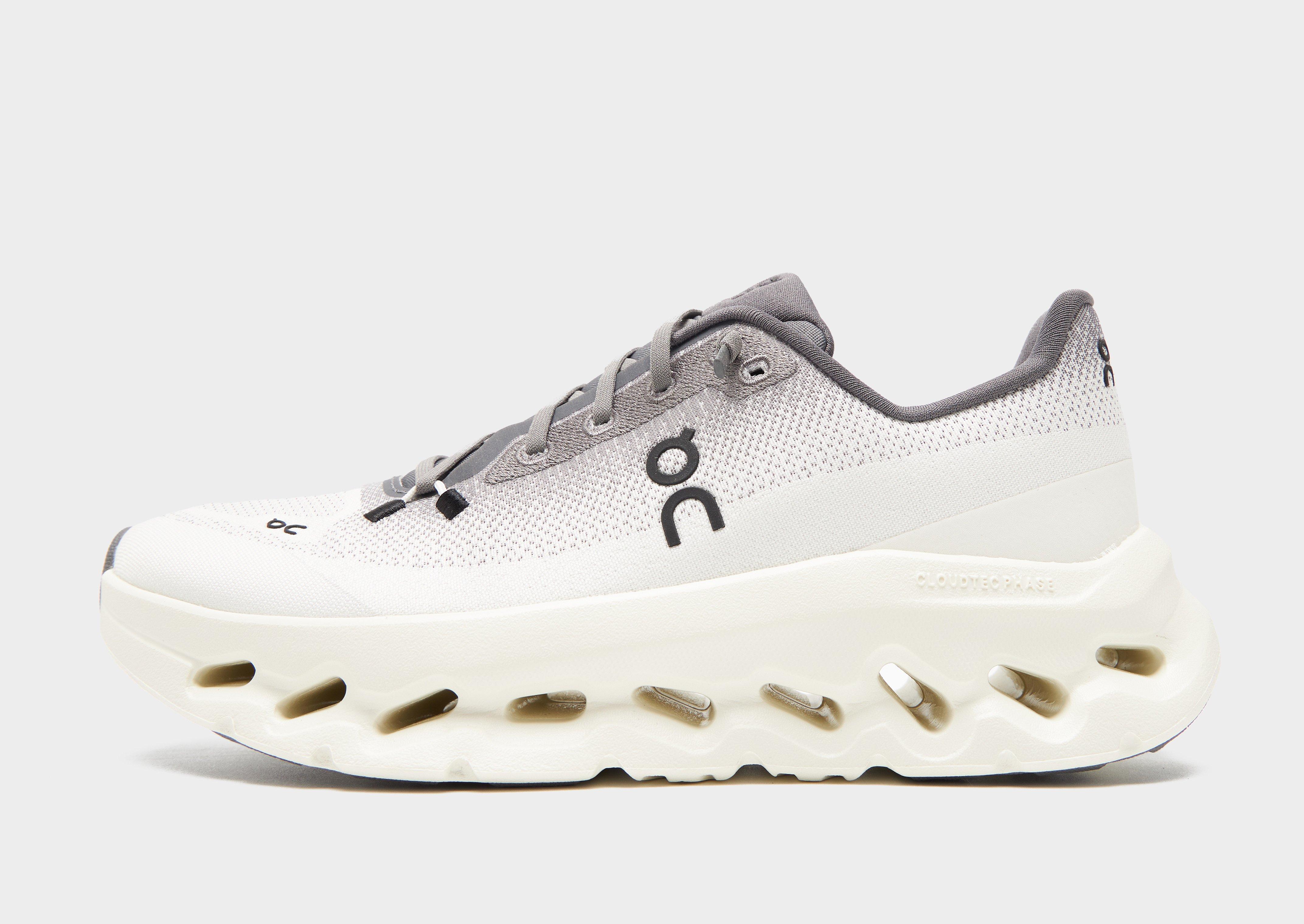 Elevate your style and comfort with these women's Cloudtilt trainers from On Running. In an Off White colourway with Grey details, these sneakers have a lightweight and breathable upper made from a recycled poly mesh. They feature CloudTec Phase with a Helion superfoam midsole for ultra-responsive cushioned comfort, while the Finite Element Analysis brings you precise support. With a rubber outsole for grip, they're finished with On Running branding throughout. Style Code: 3WE10053247